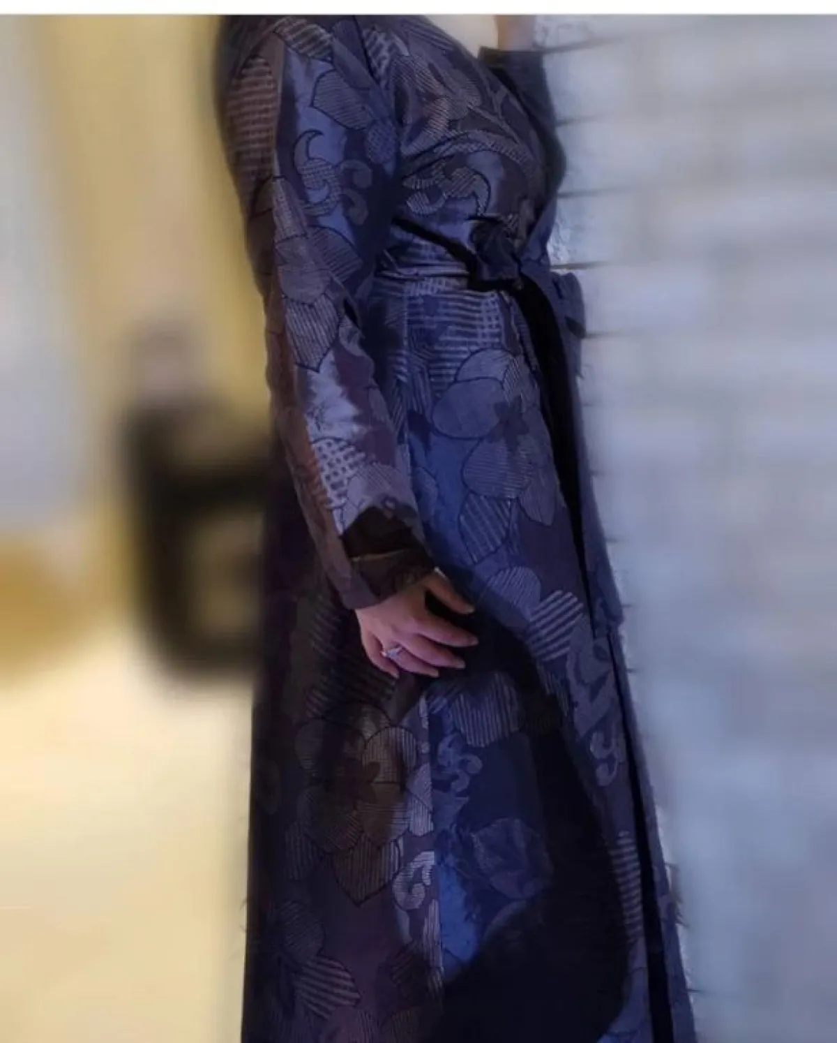 أو للمسة أكثر ترفًا، اختاري هذه العباية من Feryam Brand فيريام براند باللون الكحلي المميز، مع حزام الخصر للمسة كلاسيكية تناسب أجواء المساء، بخاصة مع الكعب العالي، والكلتش المطرز أو الميتالك.
