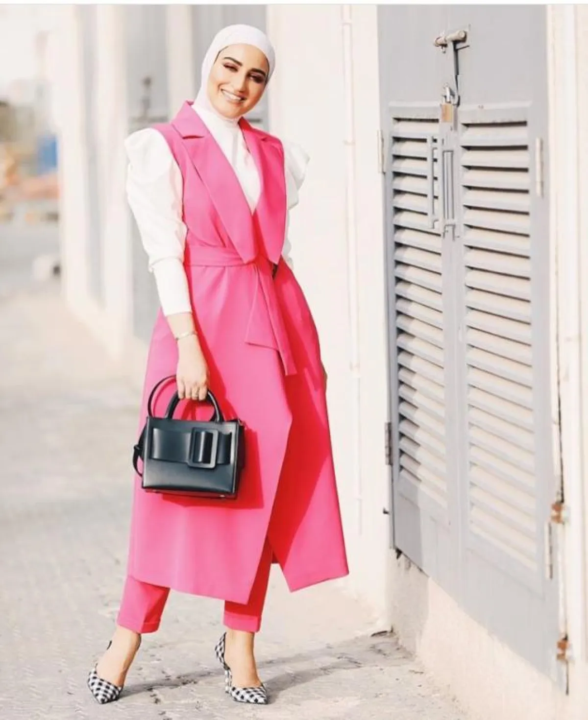 الألوان الزاهية بالصيف أساسية لا نختلف على ذلك، لكنّ بعض الصبايا يعتقدن خطأً أنه ليس من حقهنّ ارتداء هذه القطع الملونة بدرجات فاتحة، ربما ستضيف لهنّ بعض الوزن، لكنّ الأمر غير حقيقي عزيزتي، فالذكاء في الاختيار هو ما يحدد، مثل هذا البليزر الفوشي الطويل من دلال الدوب، مع البنطلون الأبيض، نسقت معه حزام الخصر ليُبرز قوامها.