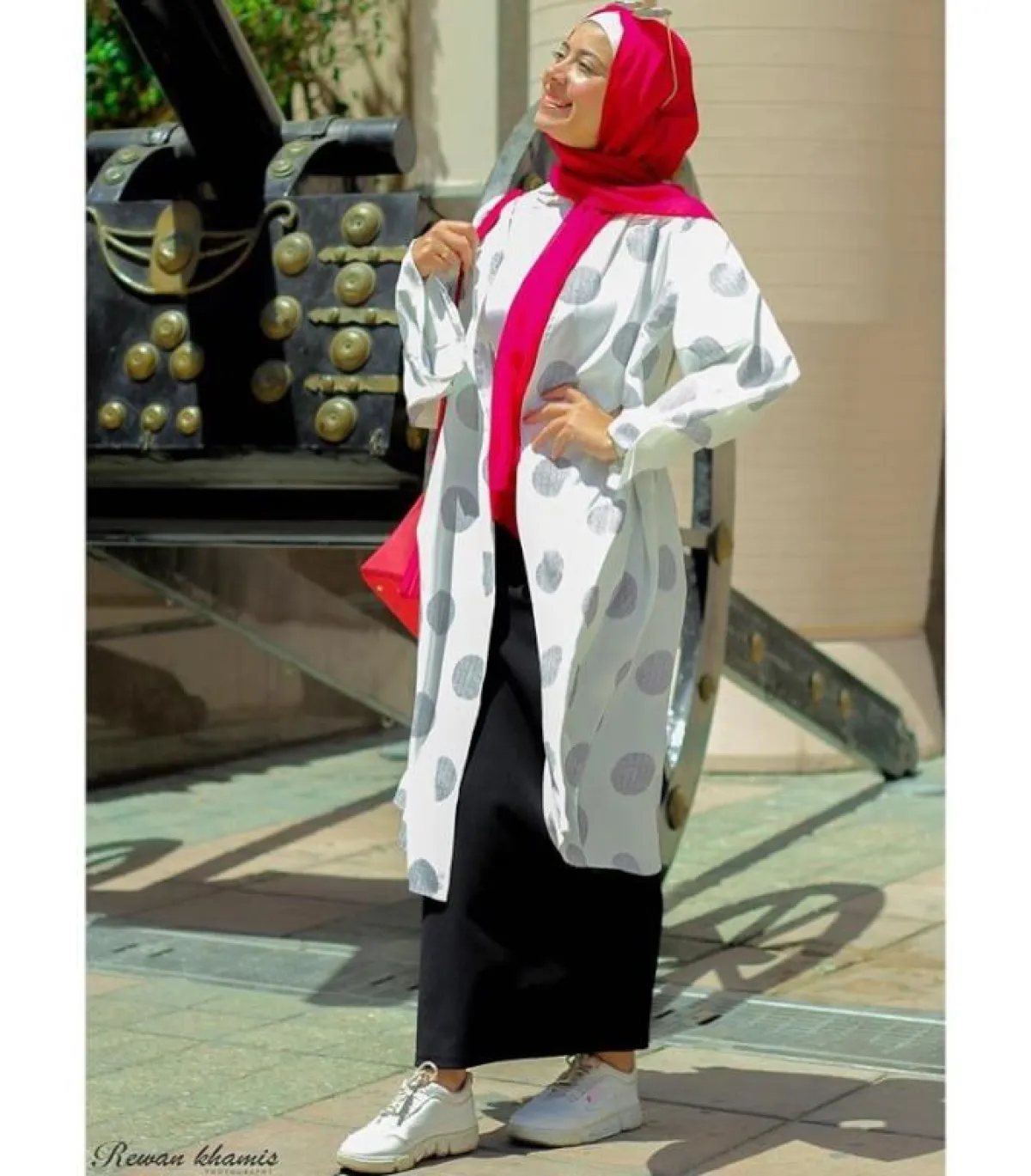 إذا كنتِ لا ترغبين بارتداء حزام الخصر مع الفساتين، أو أنّ الحزام لا يناسب اطلالتكِ، اعتمدي الفساتين التي تُبرز خصركِ من دون أن تحتاجي للحزام، كهذا اللوك من المدونة مروة حسن، للفستان باللون البرتقالي الفاقع، مع الأزرار الأمامية، لاطلالة غاية في الرشاقة، اعتمدت معها حجابًا طويلًا وعريضًا، لتبدو مرتاحةً أكثر باللوك.
