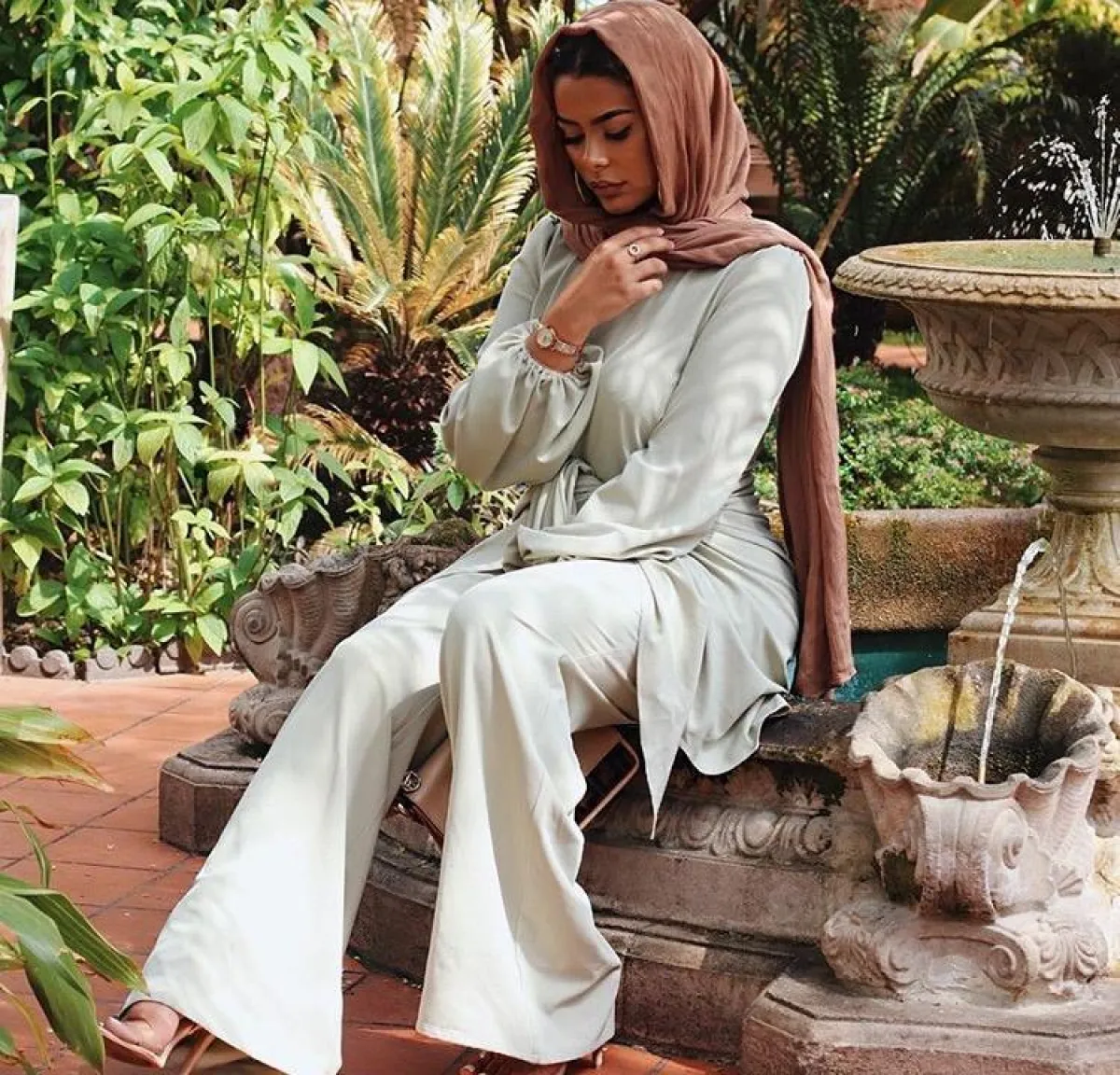 البناطيل الواسعة من خامة القماش لا تمنحكِ فقط اطلالة أكثر نحافة، بل على العكس فهي من الصحيات العصرية والرائجة أيضًا، اعتمديها مع البدلة ذات البلوزات الطويلة لتبدي محتشمة ومرتاحة أكثر، كهذه الاطلالة من المدونة حبيبة دا سيلفا.