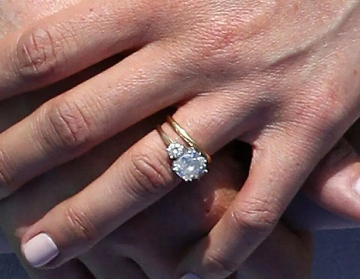 وكي يتناسب الخاتم الجديد مع خاتم زفافها القديم، قامت ميغان ماركل بتغيير الدائرة المحيطة بأحجار خاتم الزفاف من تصميمها البسيط والذهبي، إلى دائرة مزخرفة ومرصعة بالأحجار الماسية.