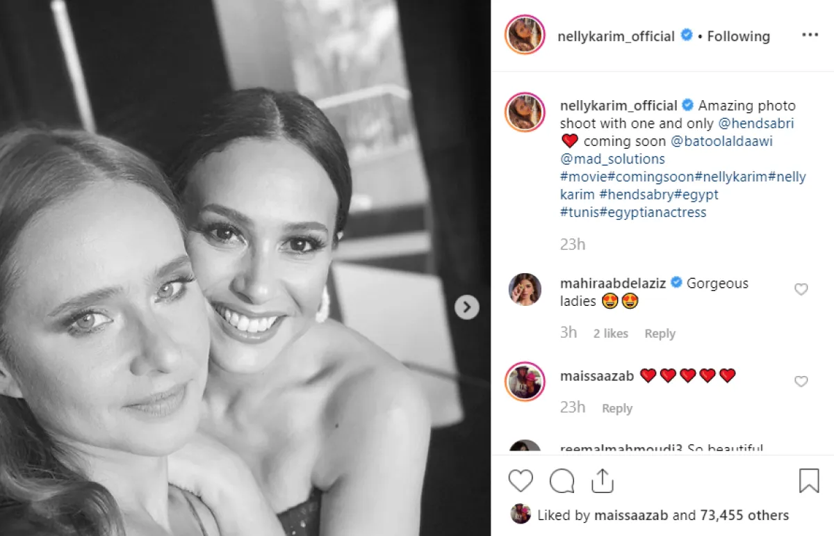 نيللي نشرت صورة تعكس عمق الصداقة بينها وبين هند صبري، واختارت أن تكون باللونين الأبيض والأسود فقط، وعلقت عليها عبر حسابها الموثق في موقع إنستقرام قائلة: صورة مذهلة مع النجمة الأولى والوحيدة هند صبري، انتظرونا قريبا.