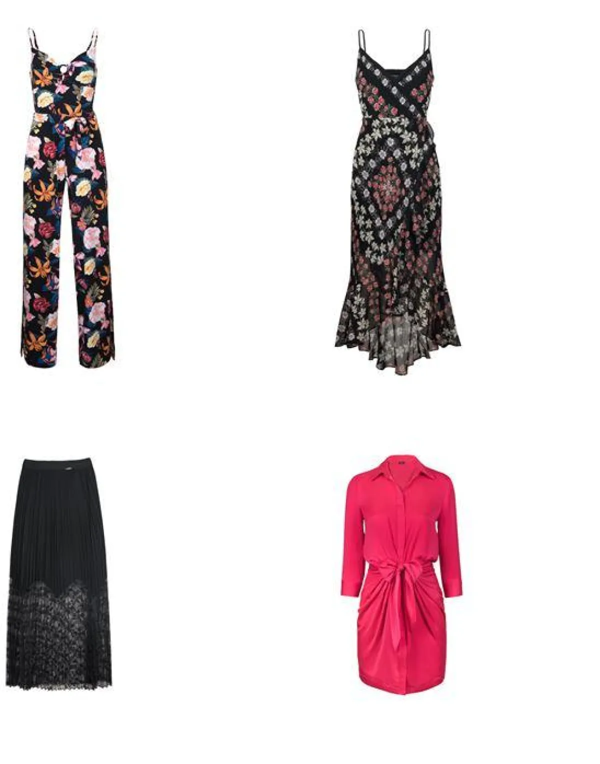 ويبرز في الإصدارات الجديدة لهذا الصيف فستانٌ متوسط الطول باللون الوردي، يشكّل القطعة المثالية التي يمكن الانتقال بها من أجواء العمل إلى الأمسيات الراقصة، حيث يبدو هذا الفستان رائعاً مع حقيبة يد صغيرة وحذاء بكعب عالٍ للاستمتاع بإطلالة جذابة تحاكي إطلالة عارضات الأزياء. بينما يمكن للباحثات عن خيار أكثر متعة ارتداء جمبسوت بطبعات الأزهار المدارية، إذ يتيح هذا التصميم إطلالةً رائعةً في فترات النهار عند ارتدائه مع حذاءٍ رياضي الطابع، كما يوفر الزيّ المثالي للأمسيات والسهرات إذا ما تم تنسيقه مع حذاء بكعبٍ عالٍ. كما يمكن اختيار أزياء عملية من الفساتين المتألقة بقصة ضيقة مع أقمشة مزركشة بزخارف الأزهار، والتي توفر الخيار الأنسب لحضور حفلات الزفاف الصيفية في المناطق التي تتميز بمناخ أكثر برودة.