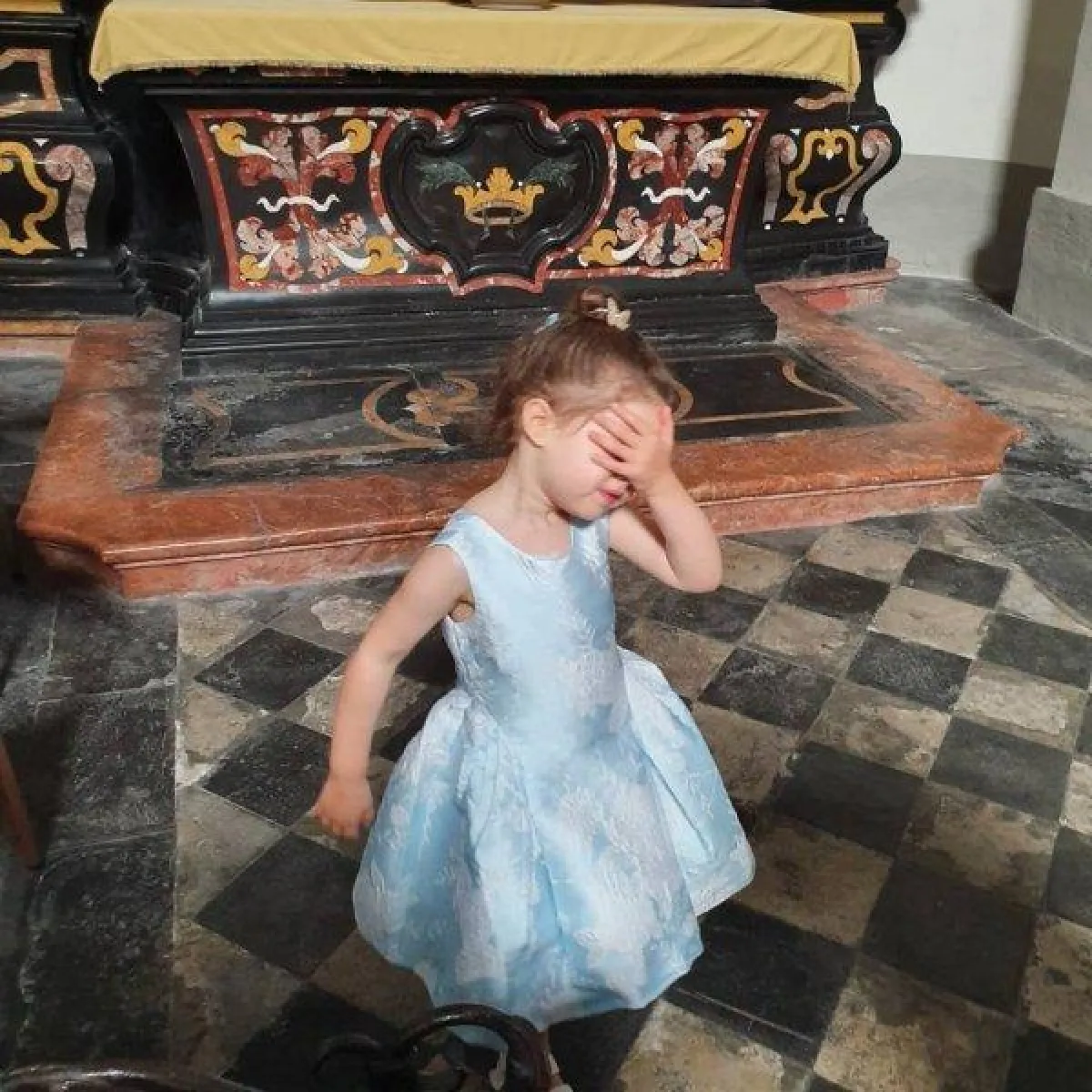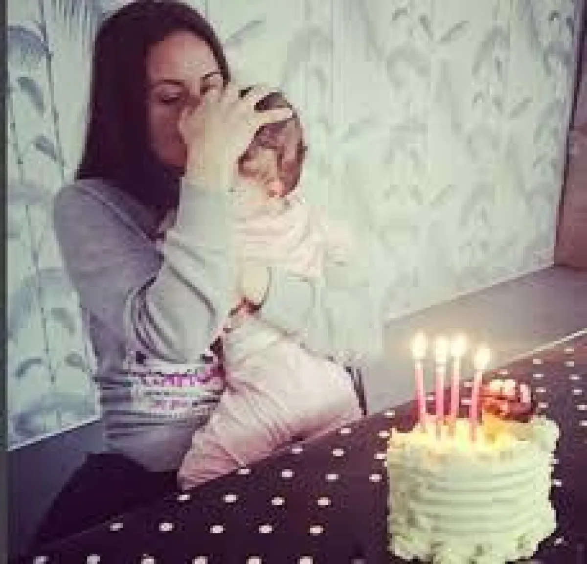 هذه المرة نشرت ريا صورة لابنتها لولا ظهرت فيها الطفلة الصغيرة تغطي وجهها بيدها عملاً بنصيحة والدتها.