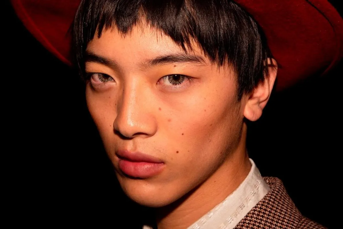 في جو مفعم بالمظهر الجمالي الذي يحتفي بالفردية، تم استخدام Rouge à Lèvres Voile بدرجة لون 25* ‘Goldie Red’ بشكل مثالي على شفاه وجهٍ من عرض أزياء مجموعة غوتشي كروز.