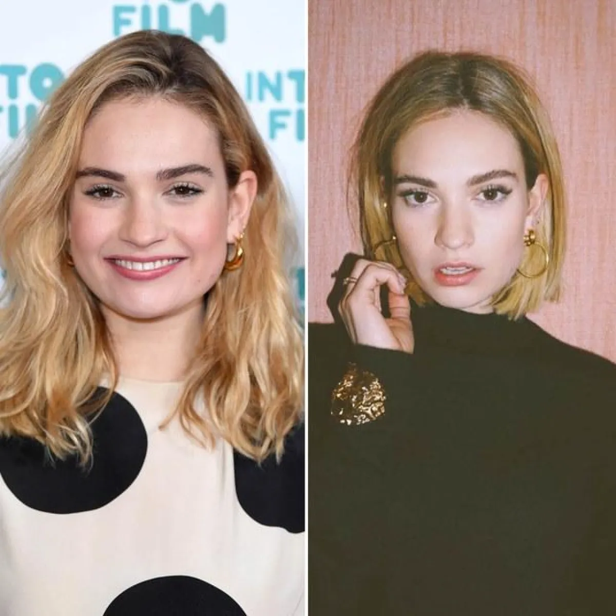 من جهتها، تخلت النجمة ليلي جايمس Lily James عن شعرها متوسط الطول ذات التموجات الناعمة، واعتمدت مؤخراً تسريحة الشعر الكاريه الناعم المتساوي الطول، والتغيير طال أيضاً لون شعرها حيث انتقلت من الأشقر الوردي الى الأشقر المائل الى البرتقالي.