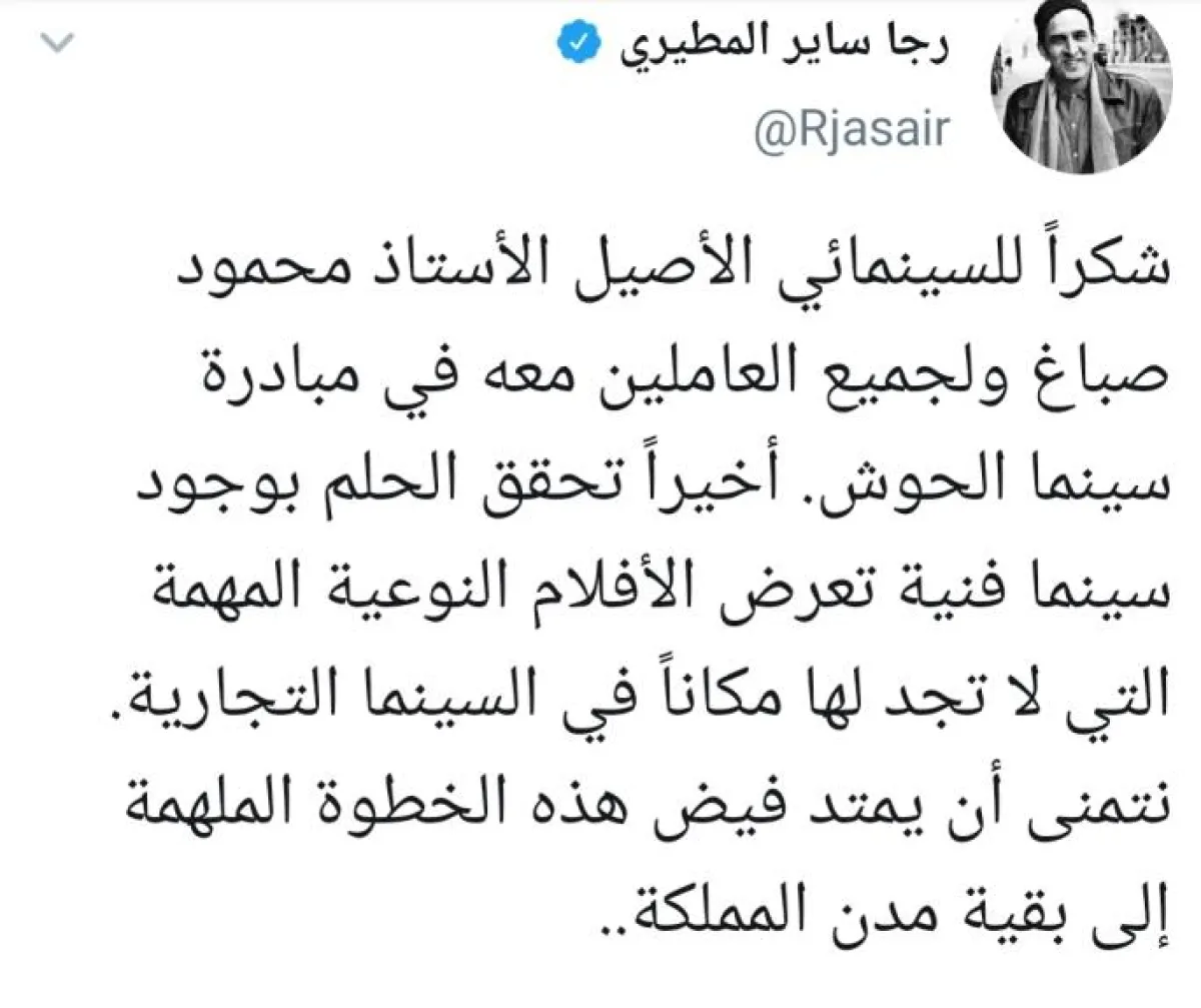 على الرغم من أن الصالات التي تم افتتاحها في السعودية تعد الأفضل والأكثر تجهيزاً في العالم، إذ تضم أحدث أجهزة العرض السينمائي، وتقدم أقوى الأفلام، إلا أن الحنين إلى "سينما زمان" بقي راسخاً في نفوس السعوديين، وهو ما دفع المخرج السعودي محمود صباغ إلى العودة بمحبي فن السينما إلى أيام الزمن الجميل عبر افتتاح سينما في الهواء الطلق تحت مسمَّى "سينما الحوش" لتصبح الأولى من نوعها في البلاد.