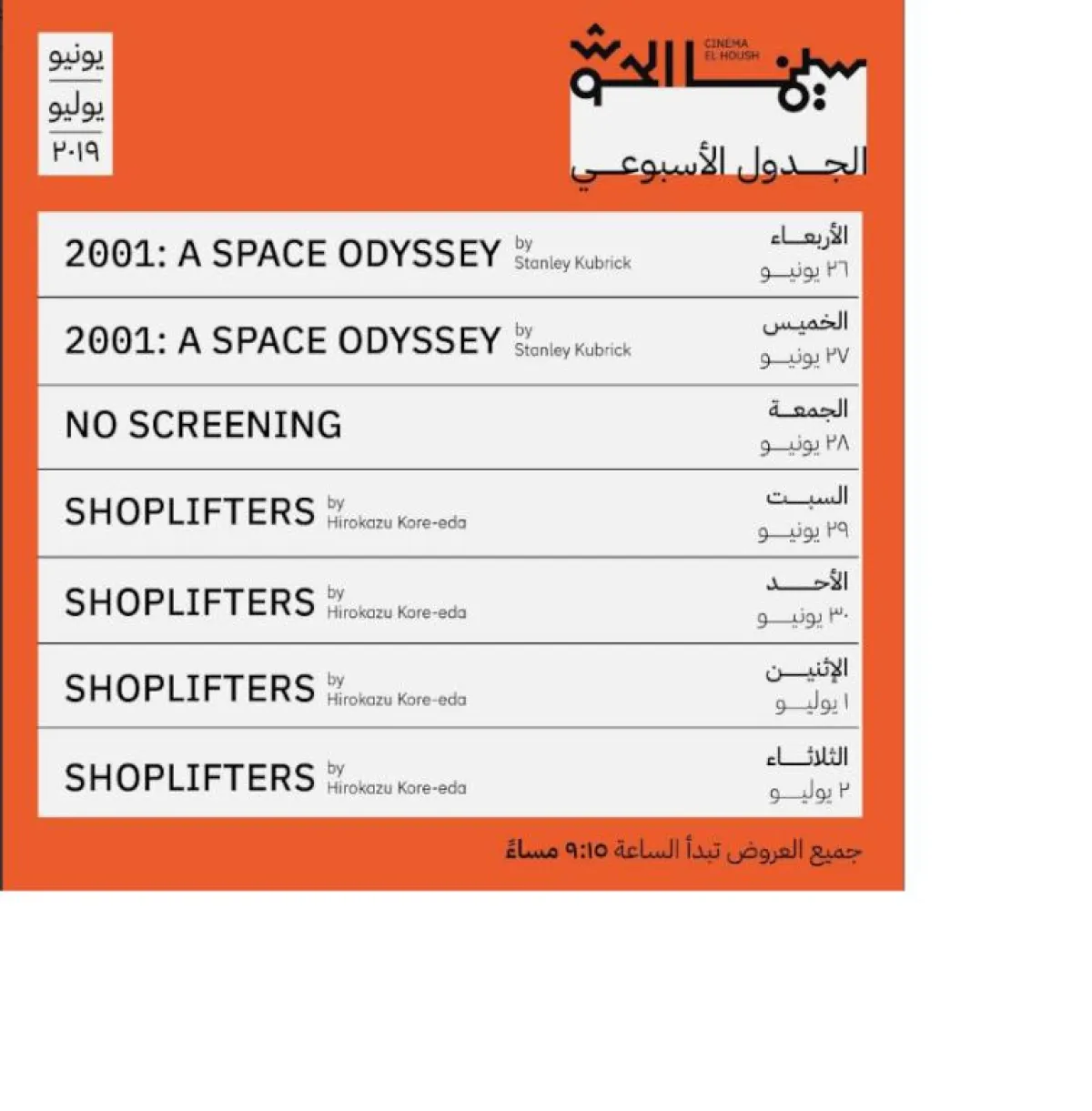 NO SCREENING: الجمعة 28 يونيو.