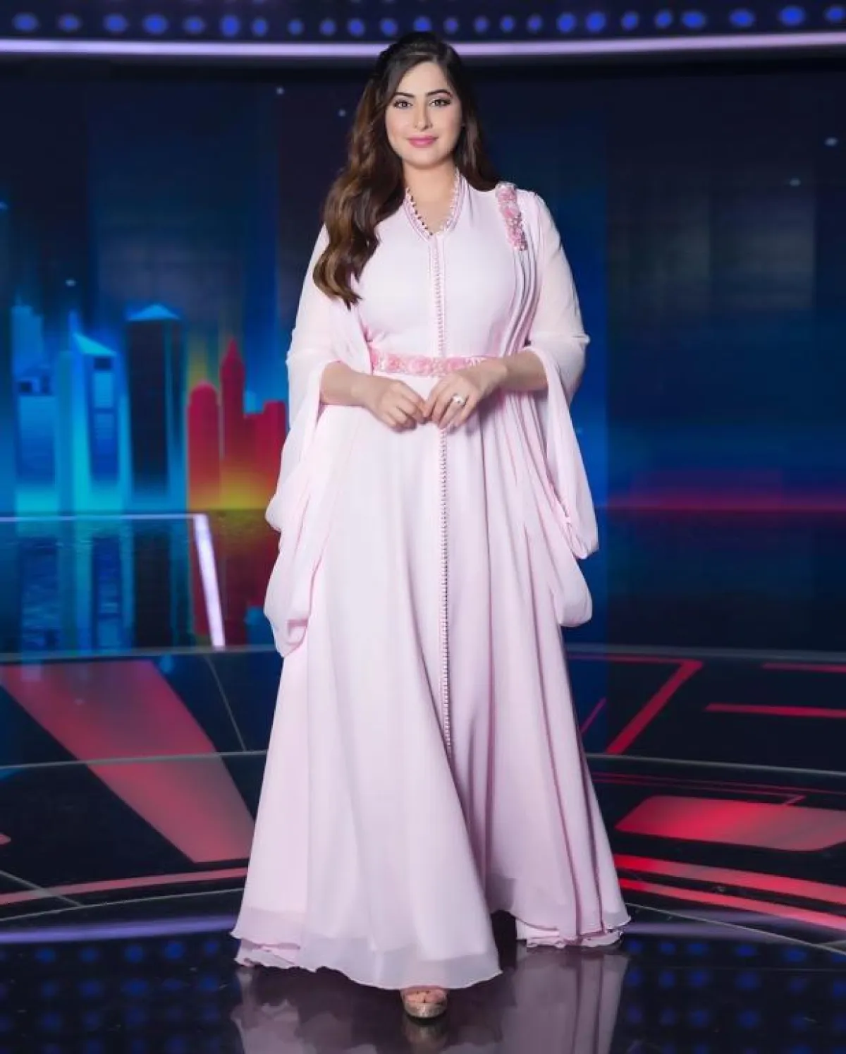 خلال مشاركة رؤى الصبّان في مناسبة مسائية ، اختارت الظهور بفستان طويل محتشم من اللون الأزرق، مع حزام يضمّ الخصر، ونسّقت حقيبة الكلاتش من لون مختلف مع اطلالتها .