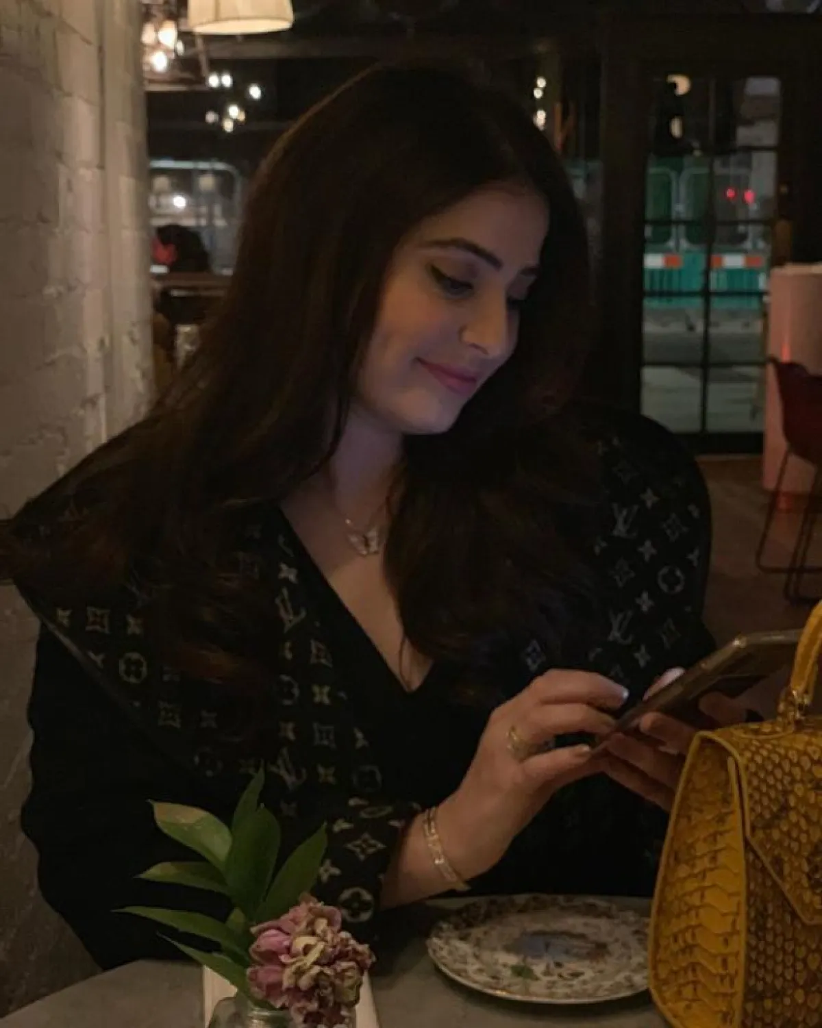 بعيدًا عن الألوان الزاهية ، أطلّت رؤى بأزياء من اللون الأسود من دار لويس فويتون خلال ذهابها لعشاء مسائي .