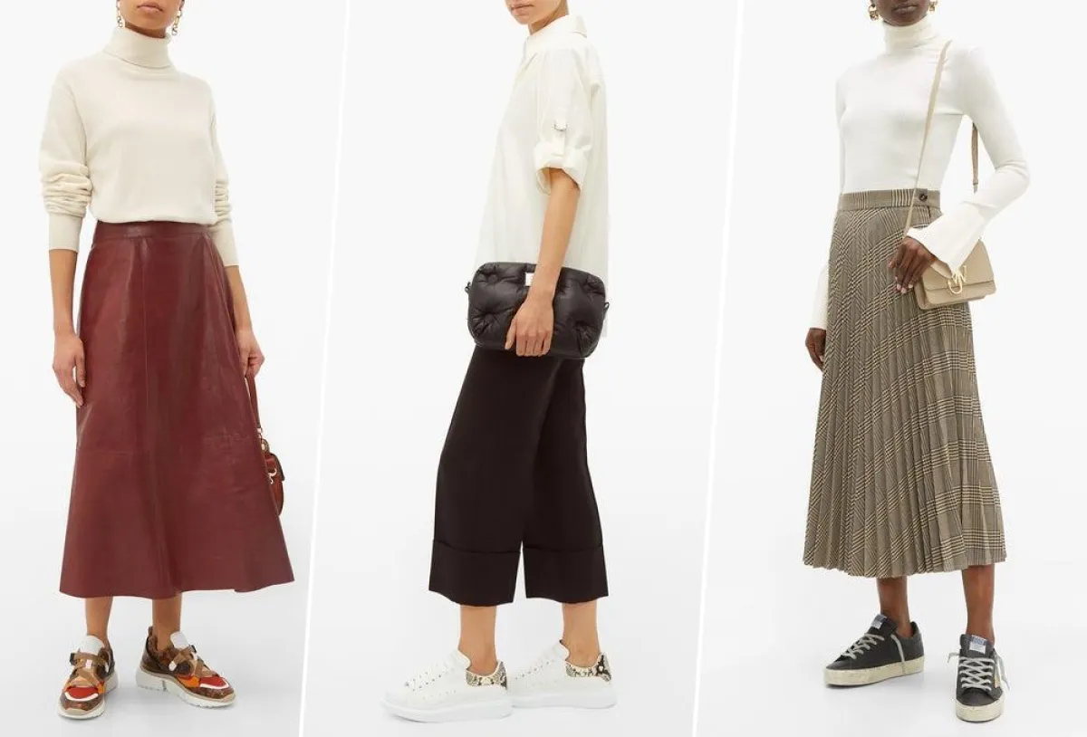 الحذاء الرياضي مع التنورة الميدي