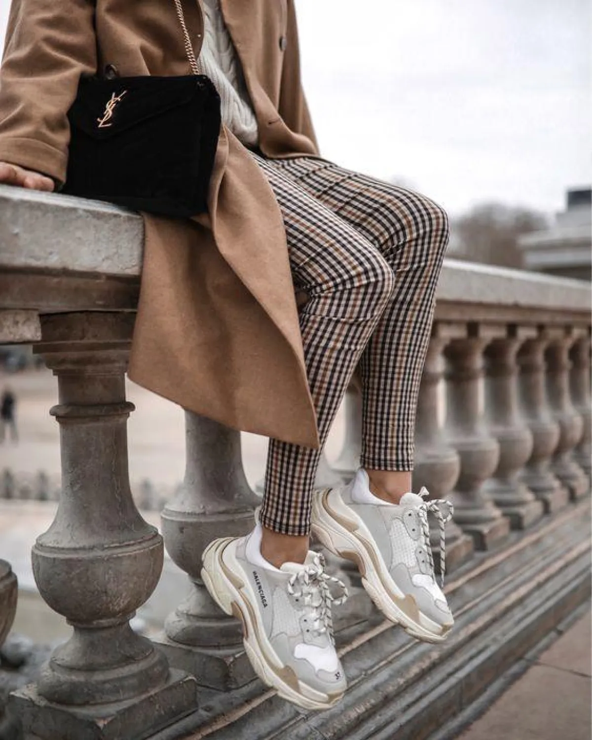 نسّقي بنطلون الكارو مع حذاء رياضي من دار بالنسياغا، وتيشيرت صيفي، لاطلالة عمليّة ومريحة .