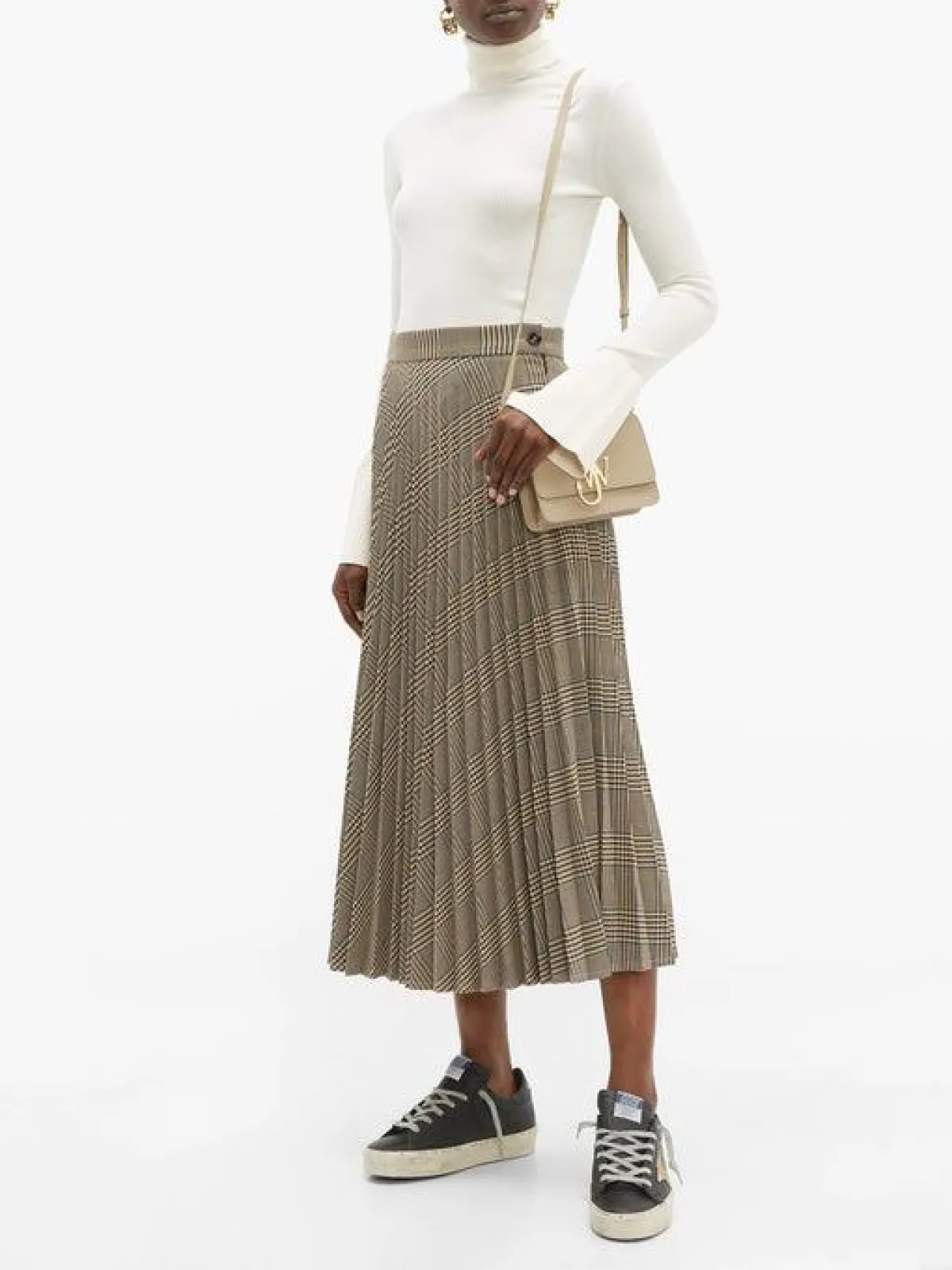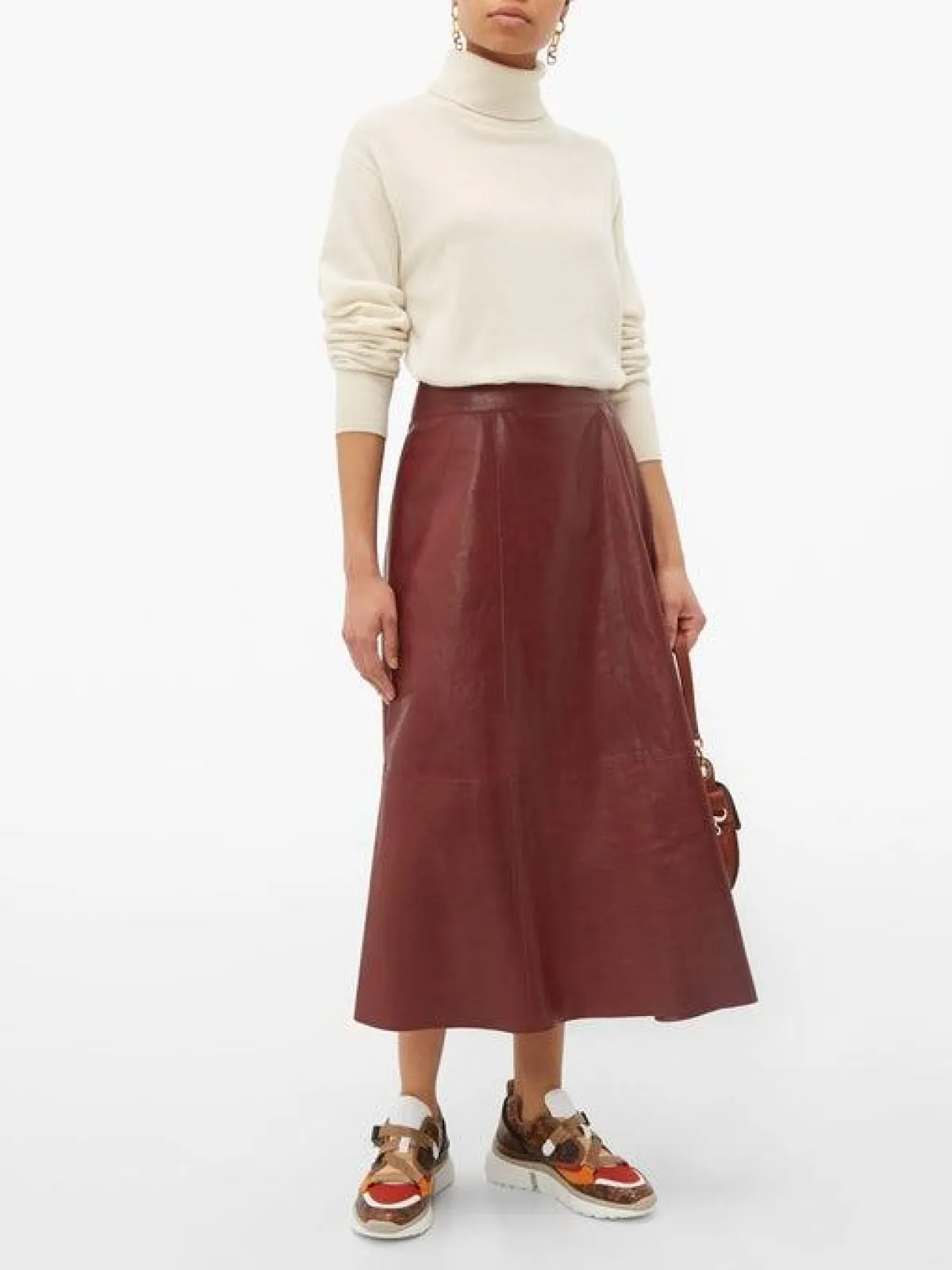 نسّقي الحذاء الرياضي من دار كلوي مع تنورة ميدي جلد و بلوزة من لون مختلف ، أو يمكنكِ اختيار الحذاء الرياضي من "غولدن غوز"، مع تنورة ميدي كارو، وتوب من اللون الأبيض .