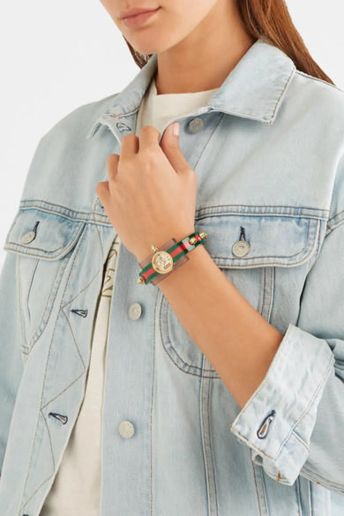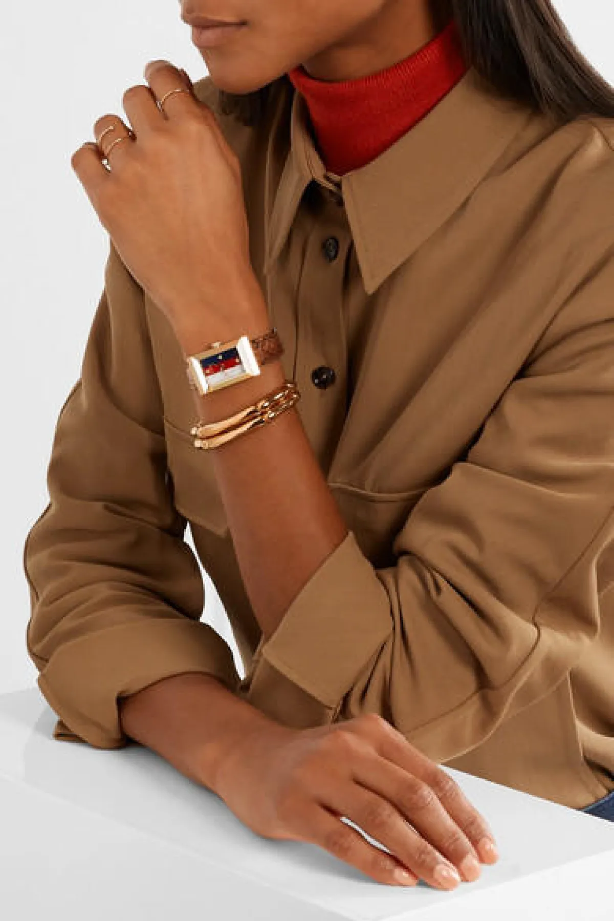 أو يمكنكِ تنسيق ساعة غوتشي مع أساور ذهبية لاطلالة لافتة للأنظار .