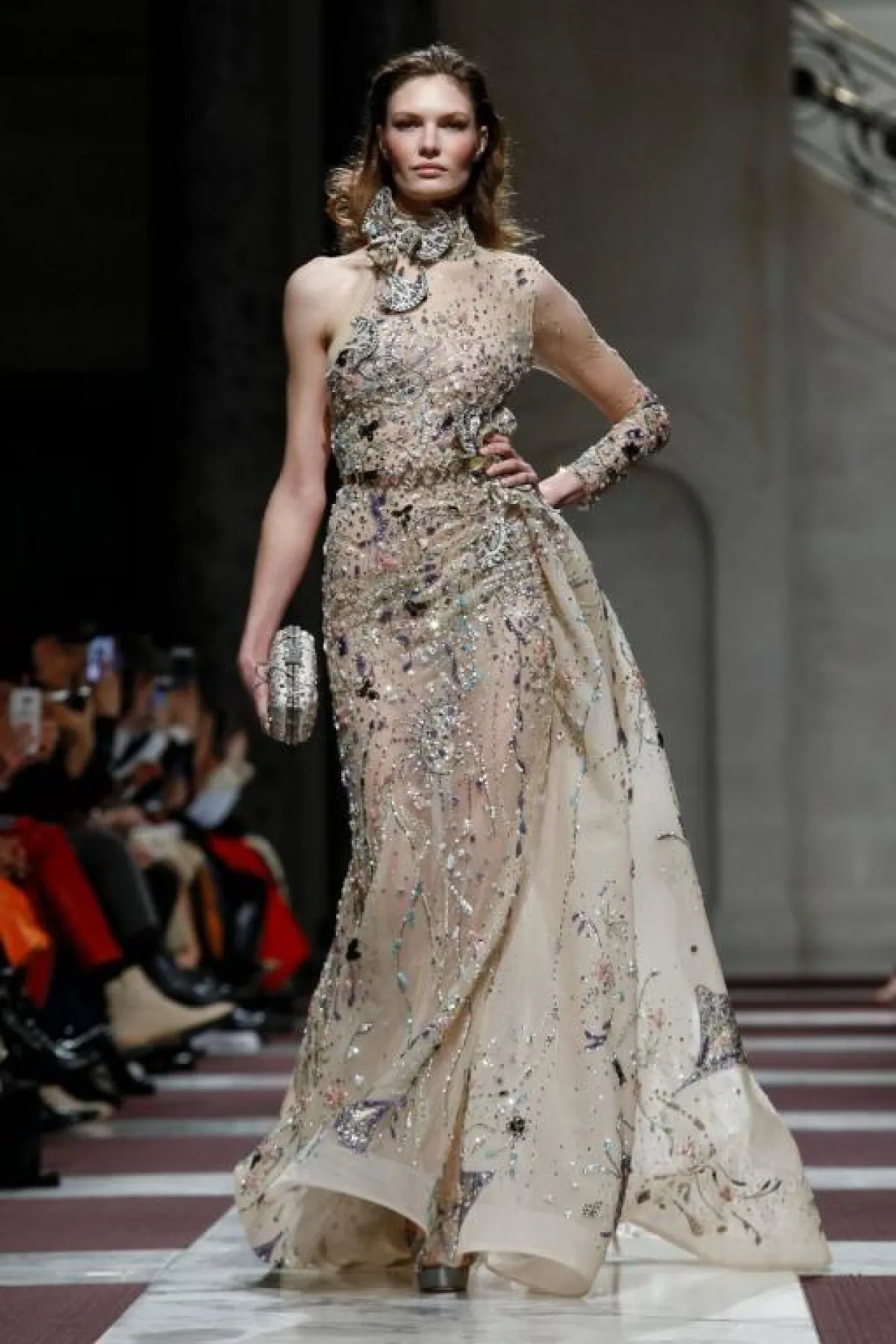 وأعجبتنا ألوان فساتين زياد نكد بدرجات النيود والأزرق والرمادي والوردي، مع الأقمشة الشفافة الفاخرة.