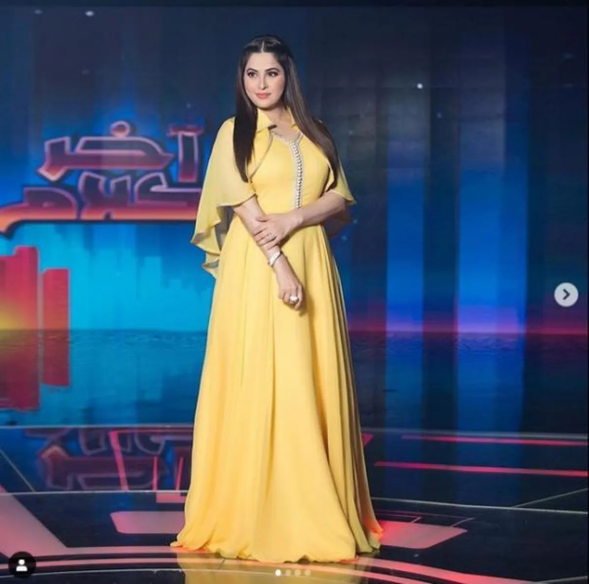 كما تألقت رؤى بفستان أصفر فاتح بأكمام طويلة واسعة وتنورة A Line، وهو مناسب حفلات الخطوبة النهارية.