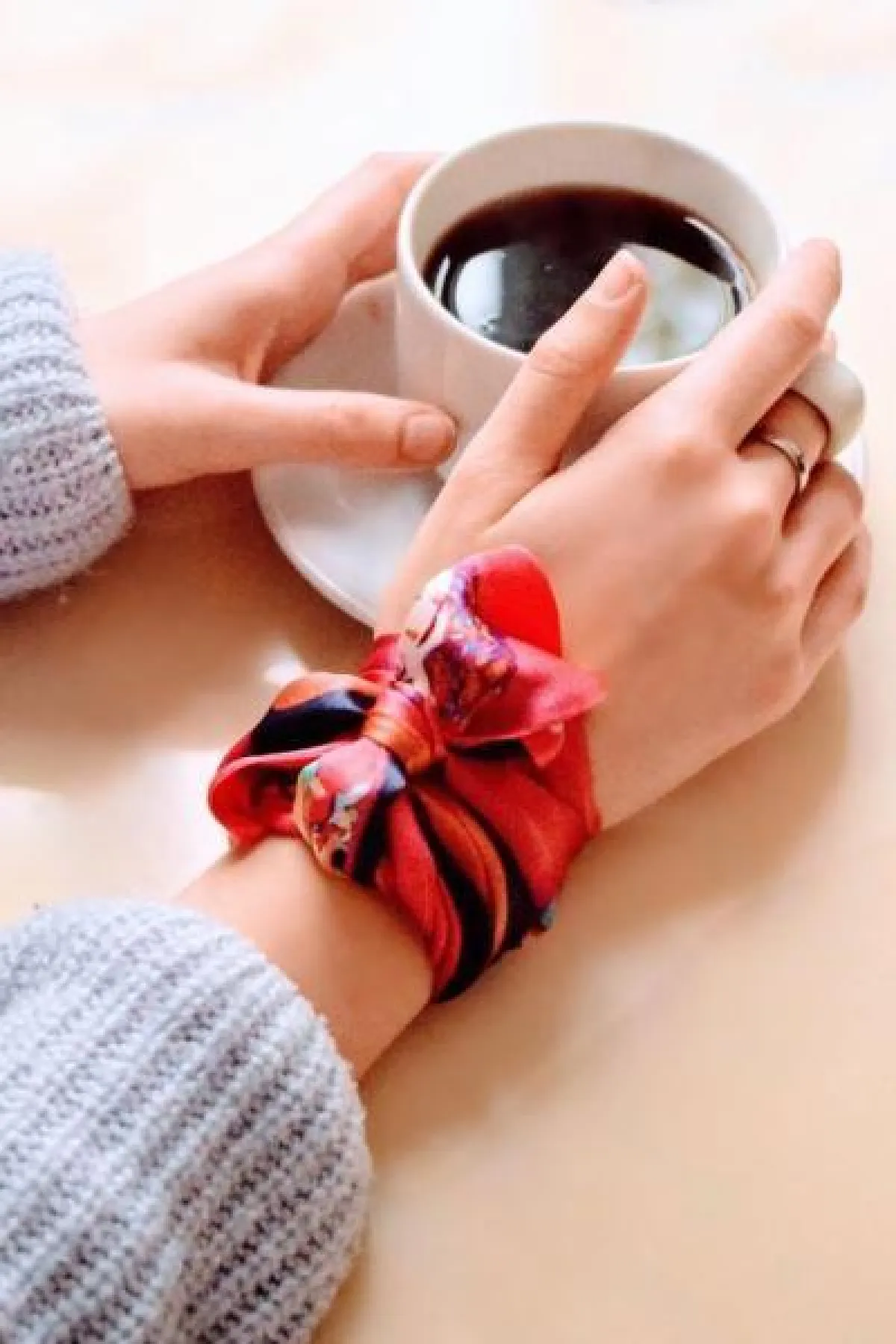 إذا كنت من محبات تجربة لفات السكارف حول معصم يديك، لا تترددي، فستكون لها طلة مختلفة تماماً.