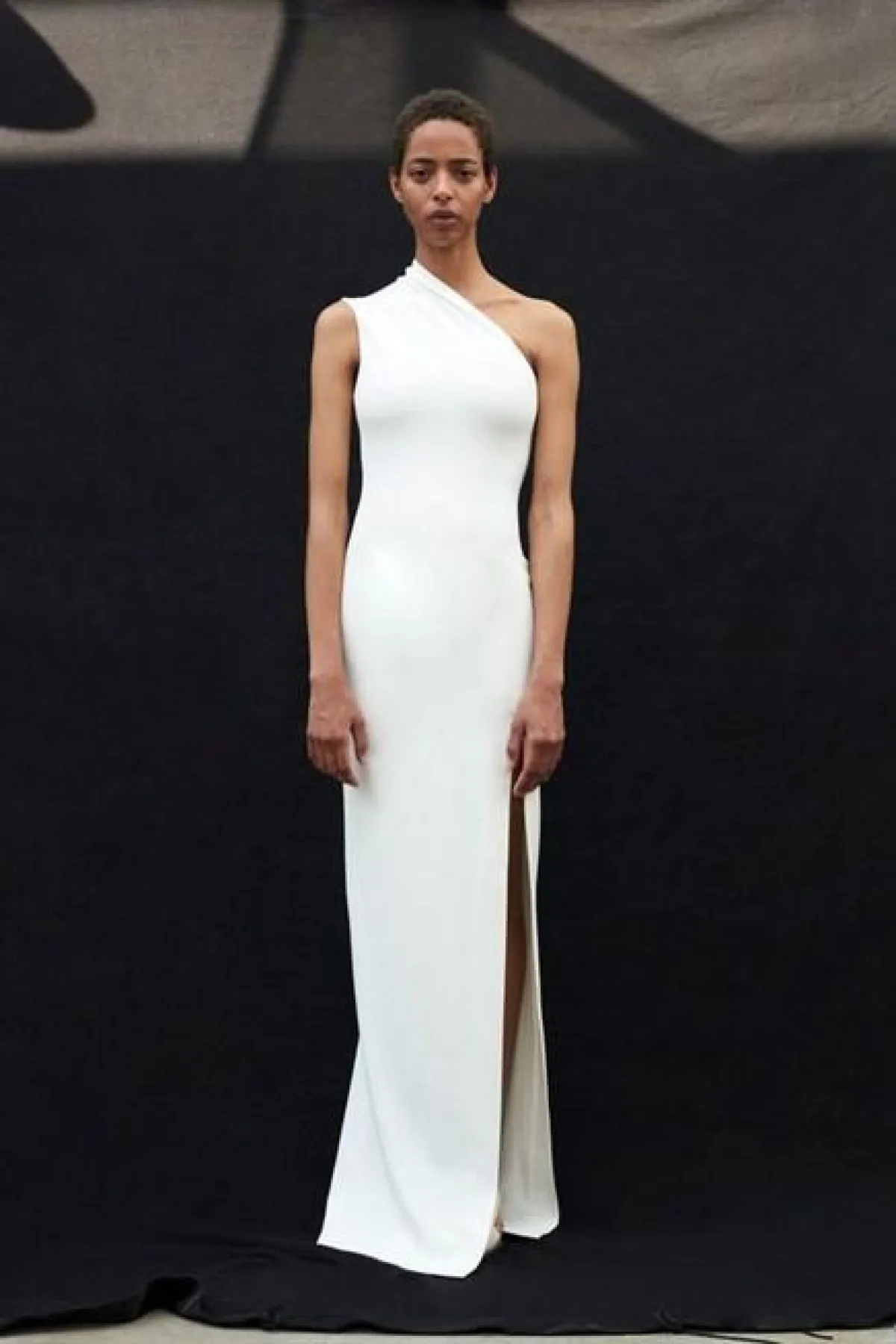 الأبيض من الألوان المميزة والفرحة والأساسية في صيف 2019، ، لذلك يمكنك اختيار هذا التصميم لسهرتكِ المقبلة من دار أزياء سولاس بفتحة جريئة، يُبرز العصرية والأناقة في نفس الوقت.