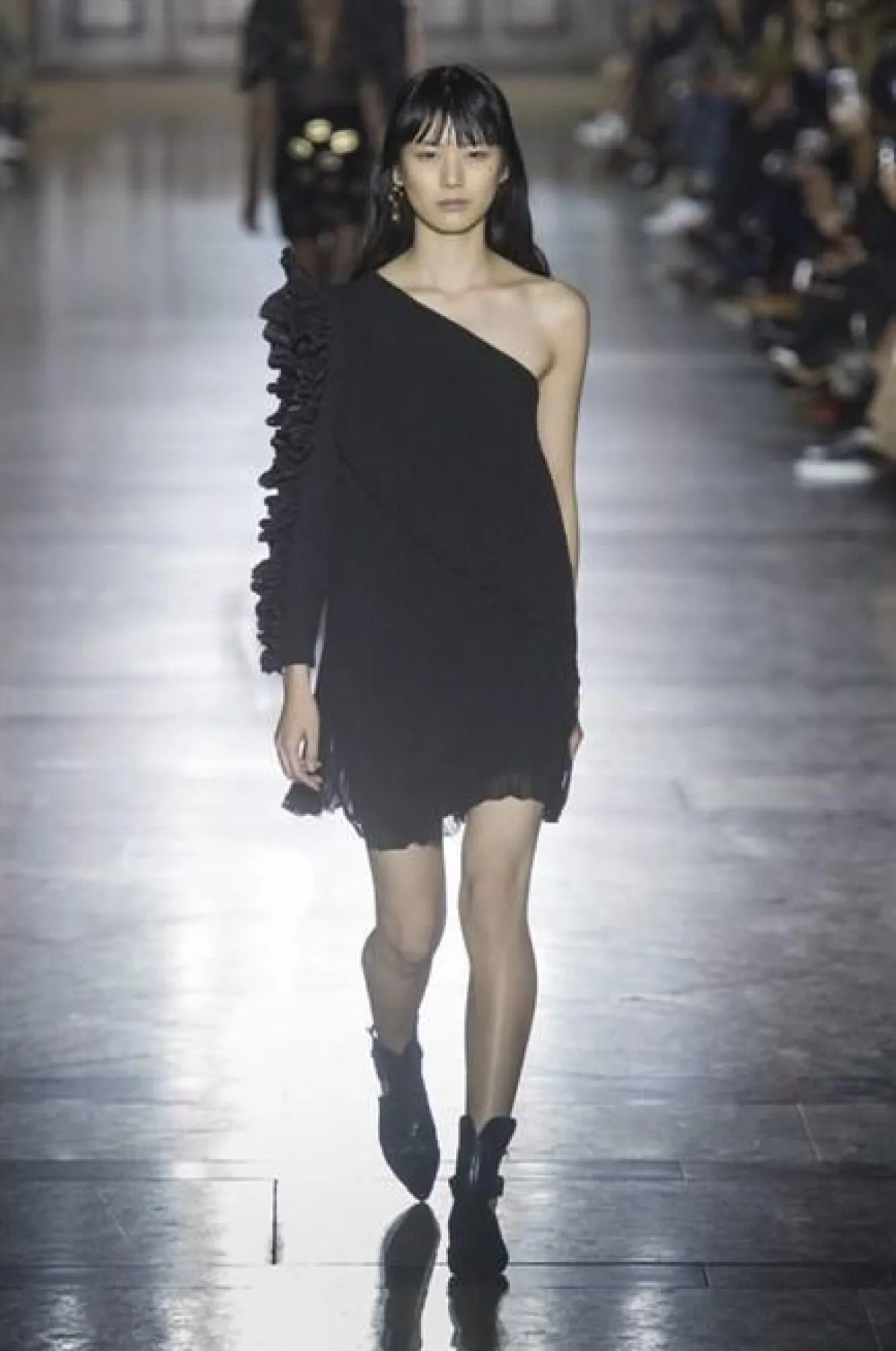 برز هذا الفستان في مجموعة جيفنشي، فستان أسود كلاسيكي لسهراتكِ، يميزه الكم الطويل الذي يعطيكِ إطلالة راقية وأنيقة وعصرية.