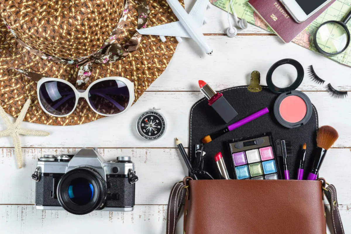 تأكدي من وضع مستلزمات المكياج الأساسية في شنطة مكياج للسفر، مما يسهل عليكِ تعديل مكياجك خلال الرحلة.