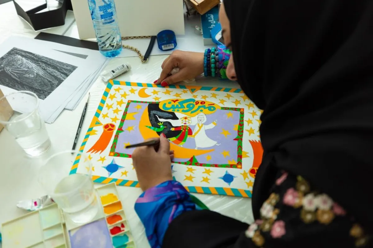 وتابع": الورشة استهدفت إطلاق العنان لإبداع المشاركين وفتحت المجال أمامهم للخروج بأفكار جديدة ومبتكرة تثري معارفهم وتضيف لهم الشيء الكثير لا سيما وأنهم على أعتاب مشاركة مهمة في معرض يضم نخباً وأطيافاً مثقفة تنظر للثقافة العربية من منظور واحد لذا يجب على الفنان العربي كسر تلك الصورة النمطية التي يتخيلها الآخر عن ثقافتنا، من خلال تقديم نماذج فنية تعكس تراث وحضارة الشعوب وتعبّر عنها بمنظور جديد ومغاير".