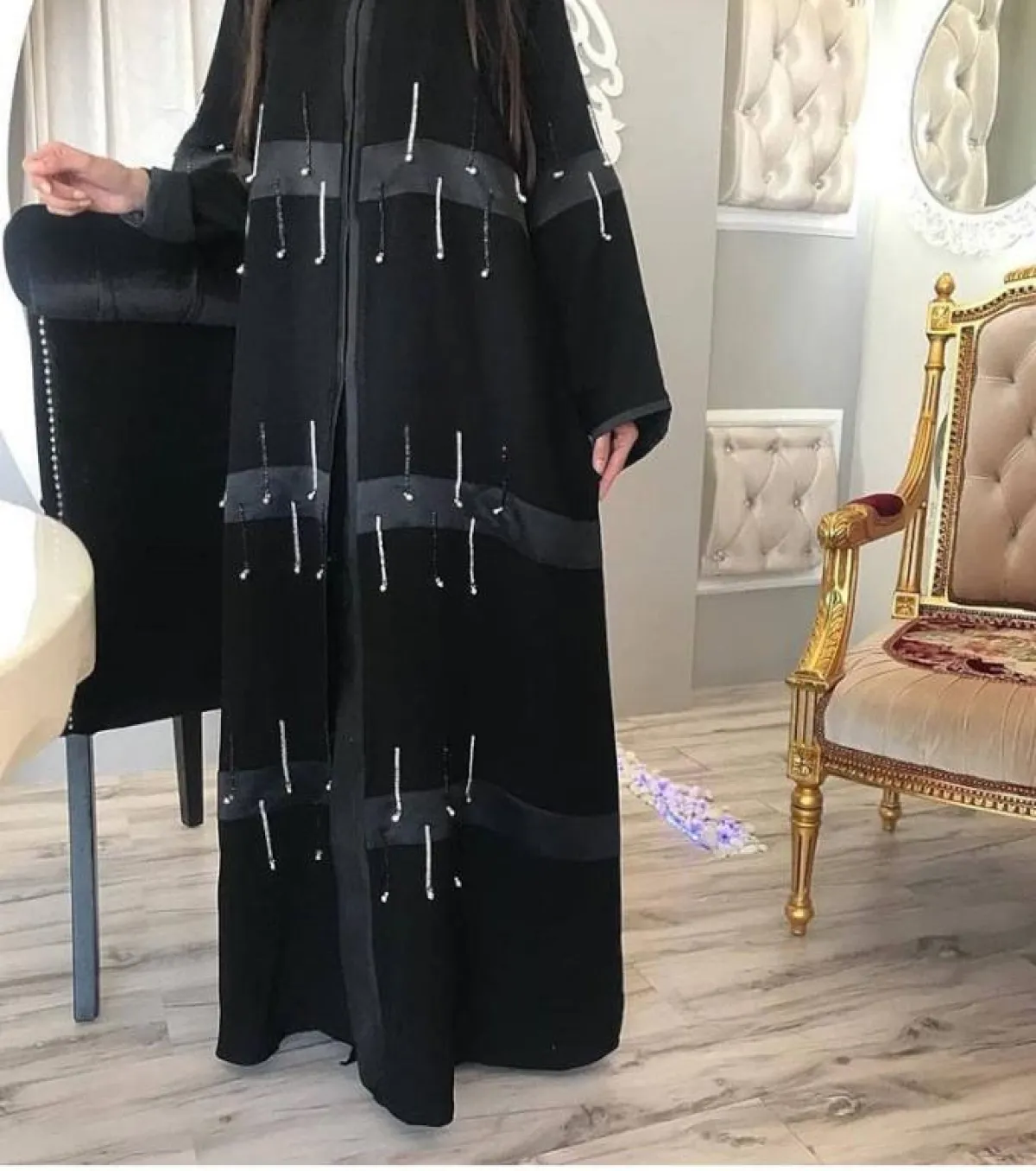 عبايات سوداء مع تطريزات الخرز اللامعة