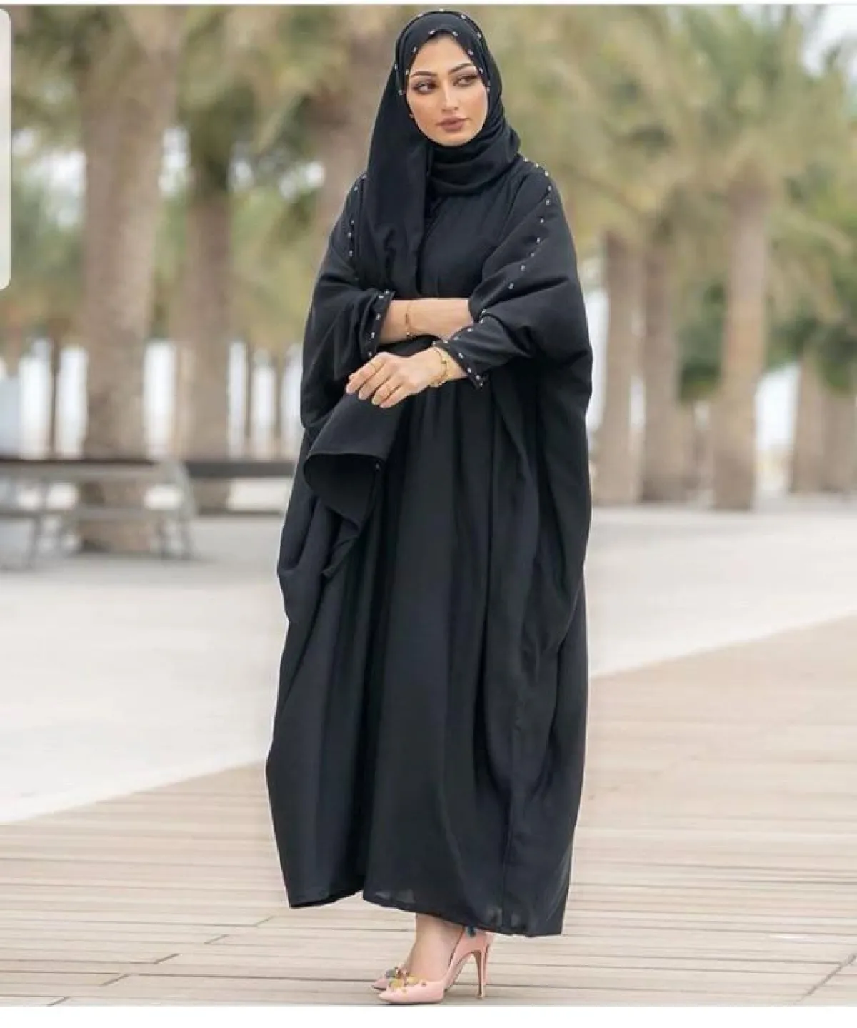 هذا الموديل يناسب أكثر السيدات، يمكنك اعتماده بالحفلات الفخمة والمناسبة، لإطلالة راقية غير متكلفة، كهذه العباية من The Black Pearl ذا بلاك بيرل، نسقيها مع كلتش صغير أسود لامع، وحذاء باللون الأسود كذلك، ولا بأس إن اعتمدت الطرحة من الدانتيل أو التول الشفاف، مع البطانة السوداء بالطبع.