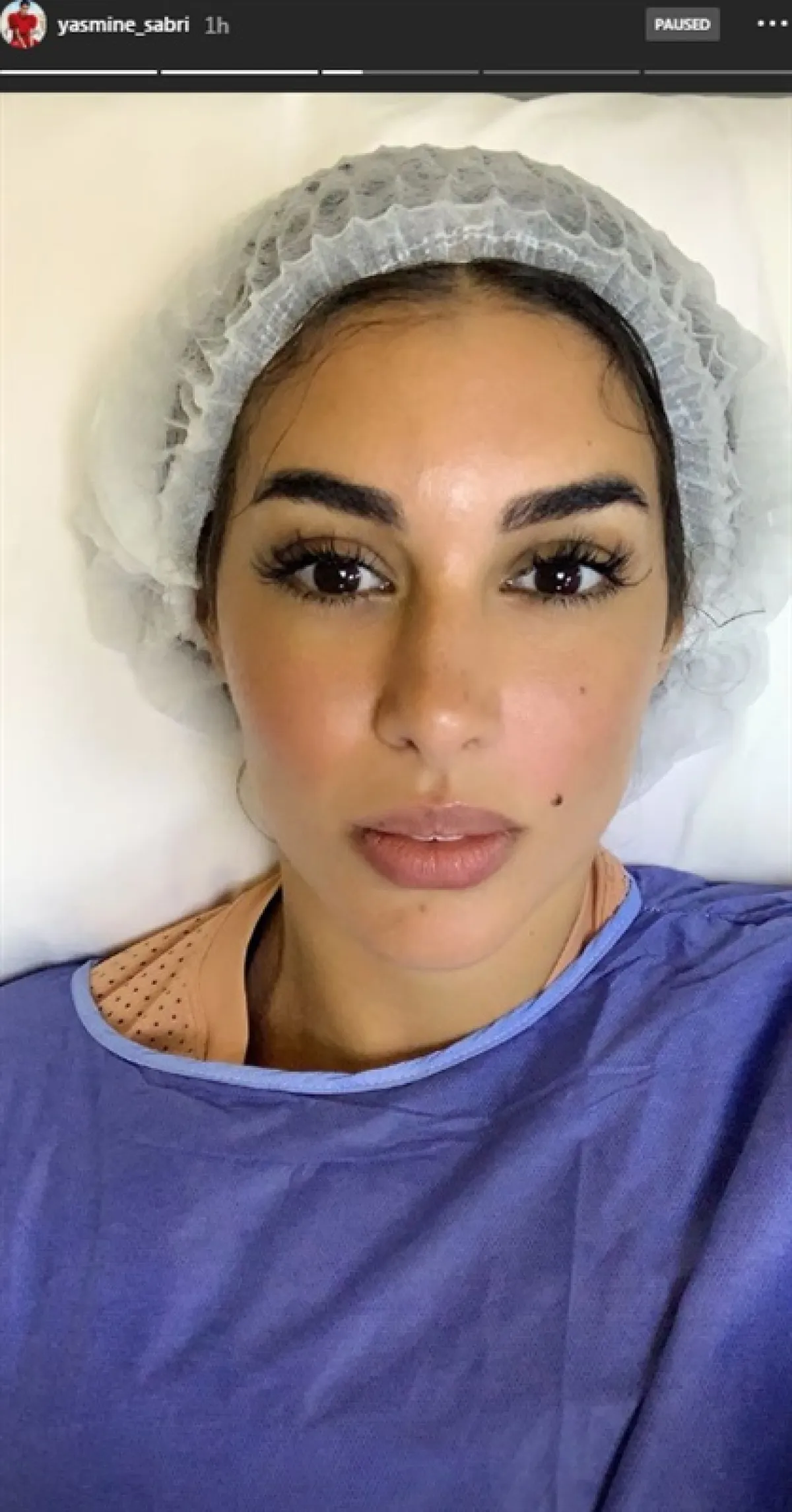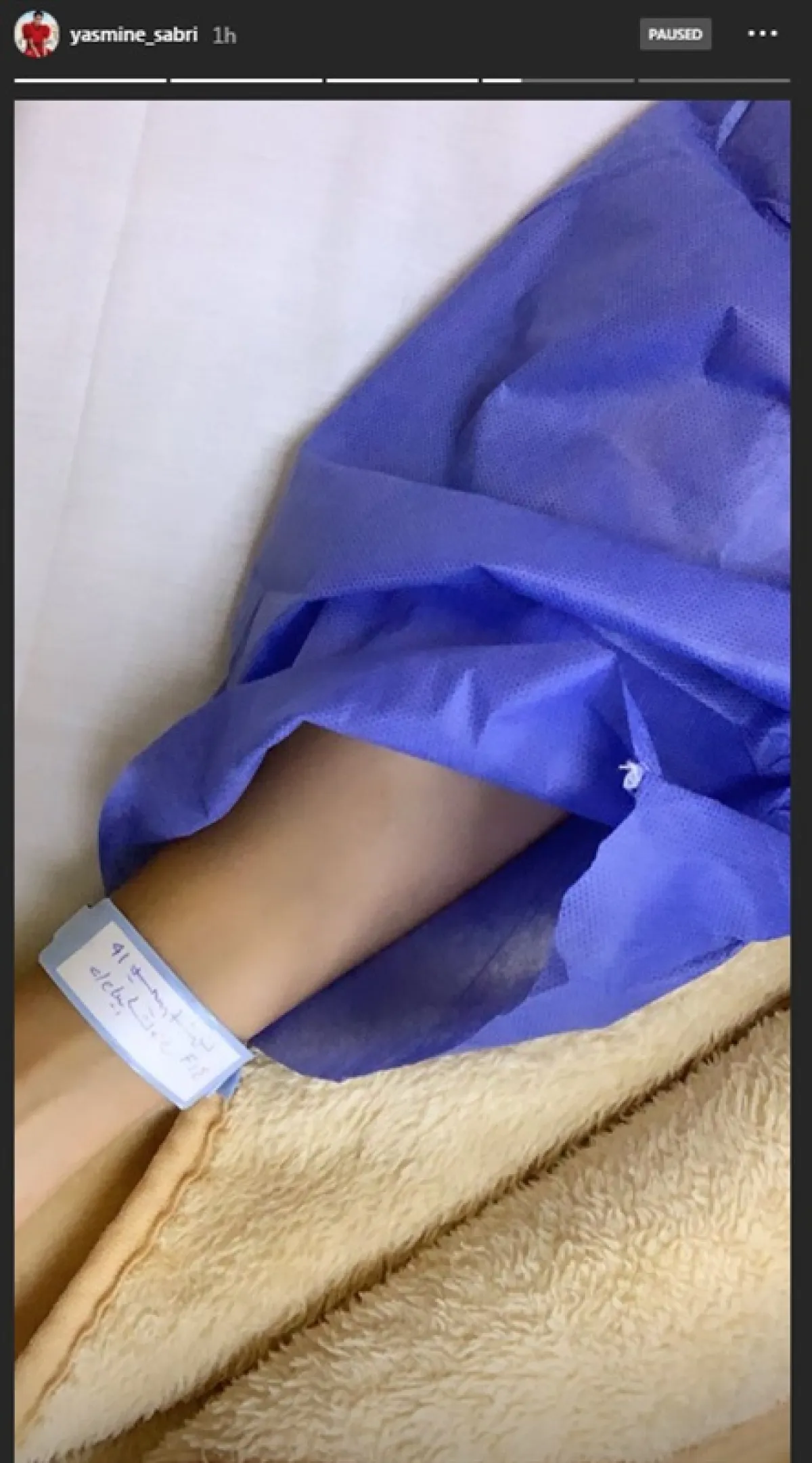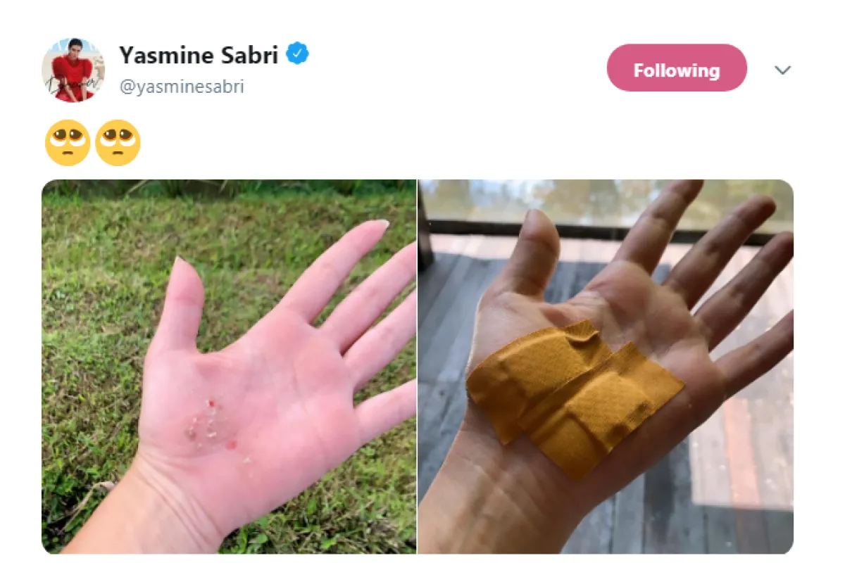 ونشرت ياسمين صبري صورتين إحداهما للجروح والثانية لضمادات على يدها، ووضعت أيقونة لشخص يبكي، ما دفع النشطاء للتفاعل مع الصورة قائلين: "عين وصابتك".