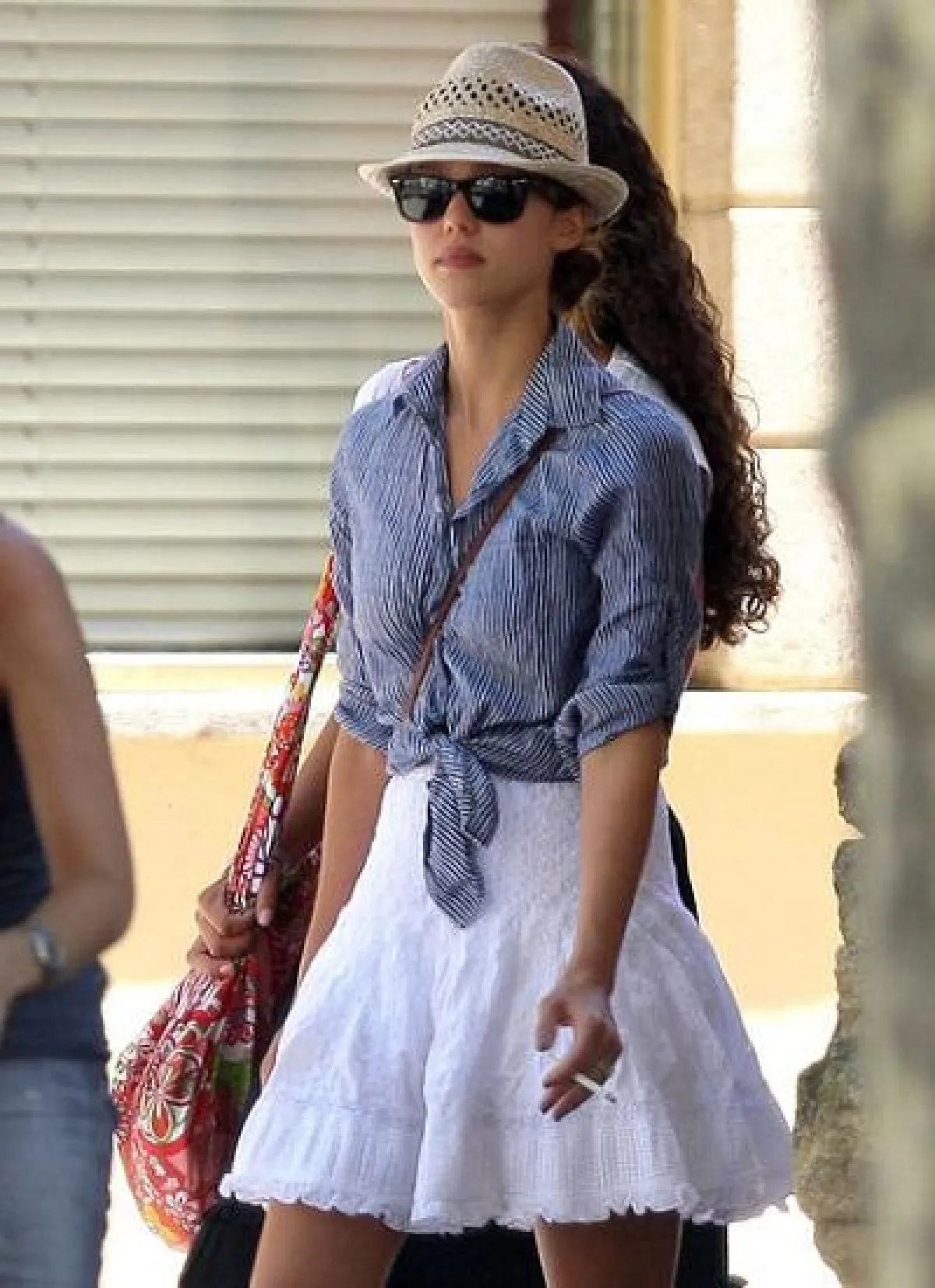 من القبعات الأكثر رواجاً في السفر، قبعات القش التي تعتبر الصديق المثالي للمرأة خلال رحلاتها في فصل الصيف. اختارت النجمة جيسيكا ألبا Jessica Alba قبعة Fedora خلال سيرها في الشارع، معتمدةً إطلالة كاجوال جميلة. تتميز هذه القبعة بثقوبها الصغيرة، ذلك لتتيح لك الشعور بالراحة أثناء ارتدائها.