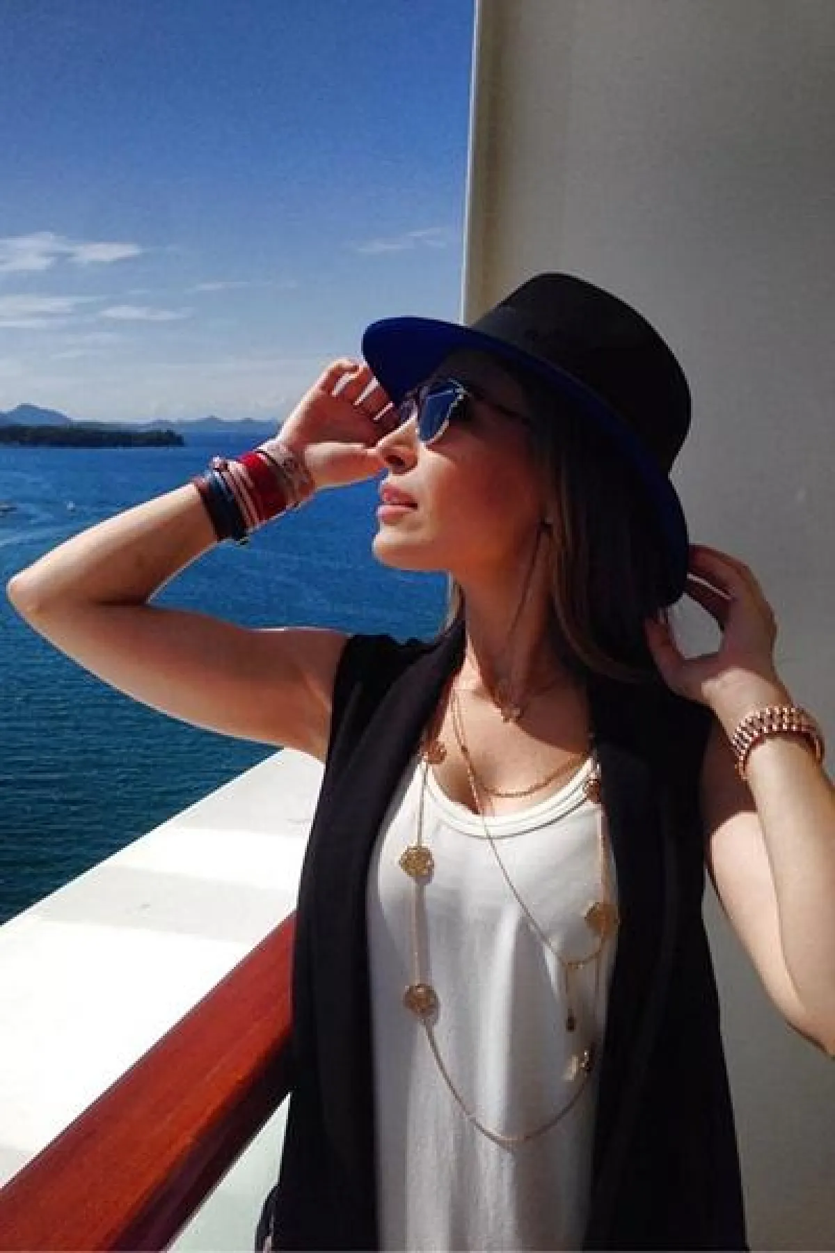 أما إذا كنتِ مسافرة هذا الصيف في رحلة بحرية بامتياز، فعليكِ أن تُلقي نظرة على الإطلالة الكاجوال اللافتة، التي نسقتها النجمة يارا على متن السفينة، معتمرة قبعة سوداء مع توب باللون الأبيض، وجيليه أسود أنيق.
