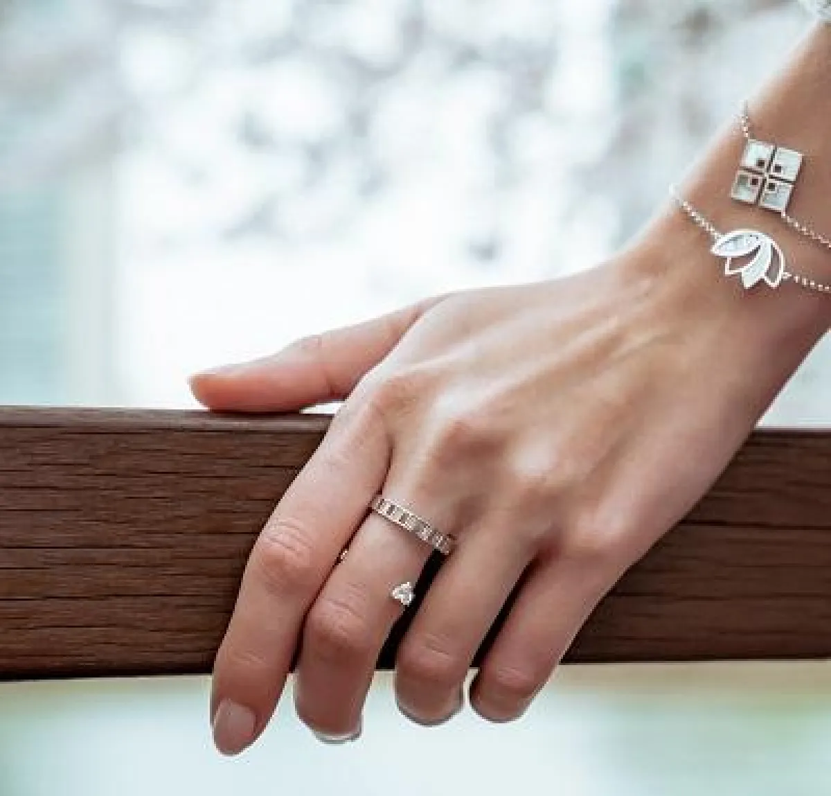 استوحيت أحد التصاميم من زهرة اللوتس، التي تعد بمثابة رمز للسعادة، والنمو، والتجدد، بينما تضيف الأجزاء الهندسية لمسة من المرح لهذا التصميم الذي يعد الأكثر مبيعاً.