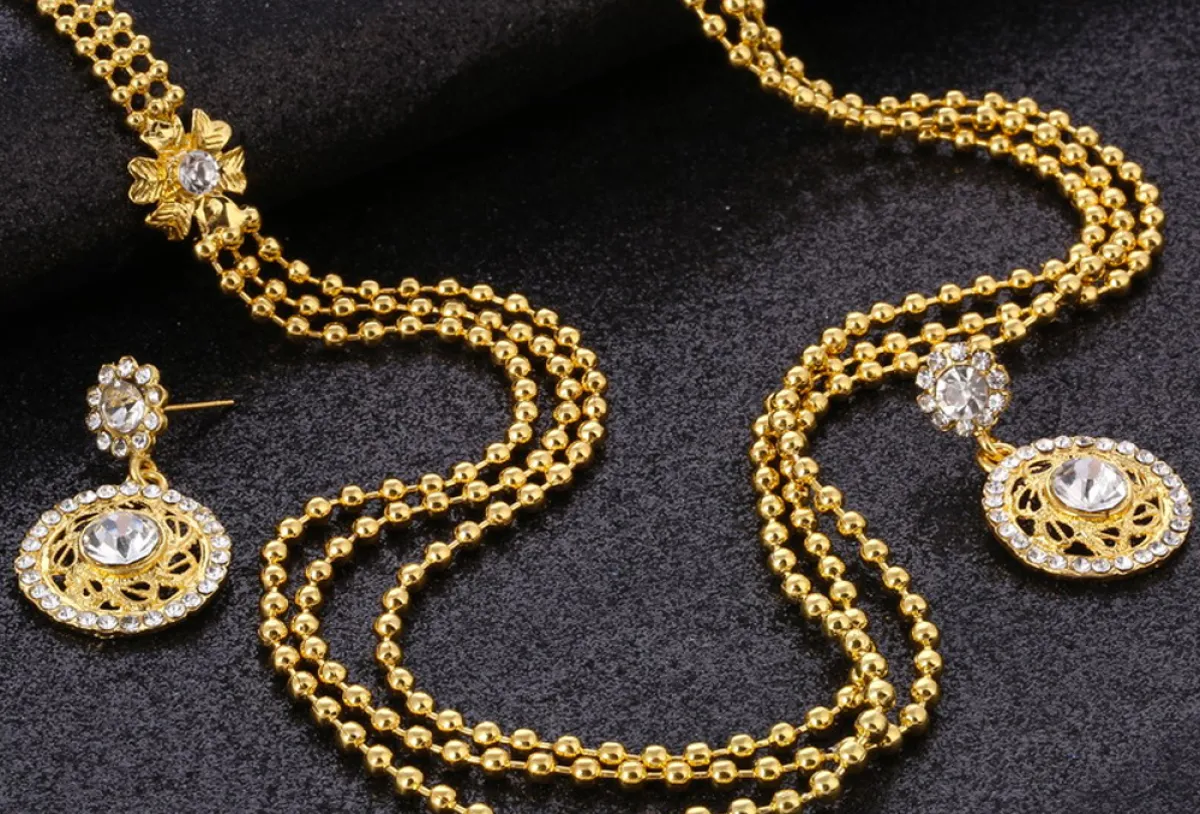 أطقم الذهب مع الأحجار الماسية المدورة