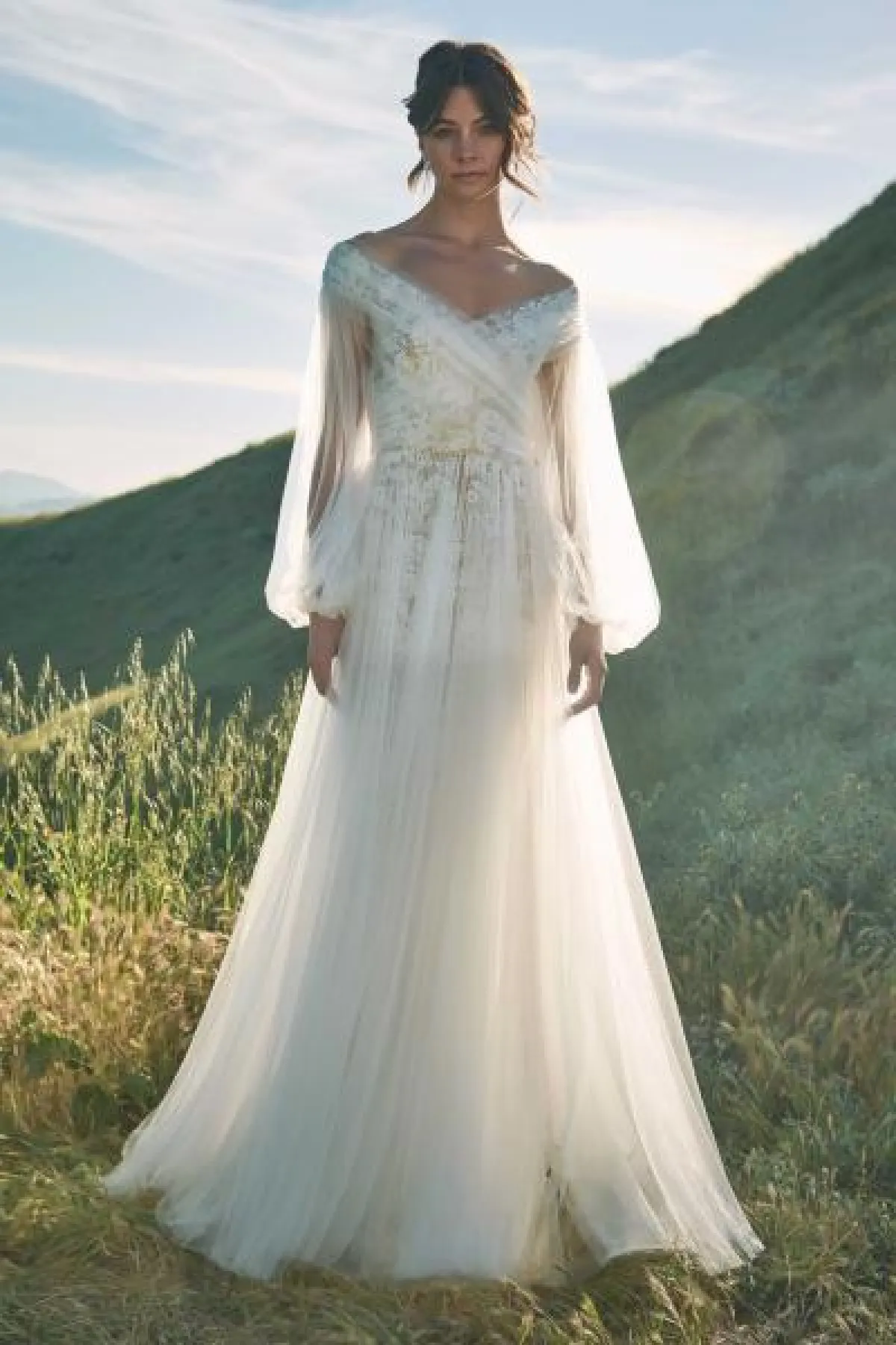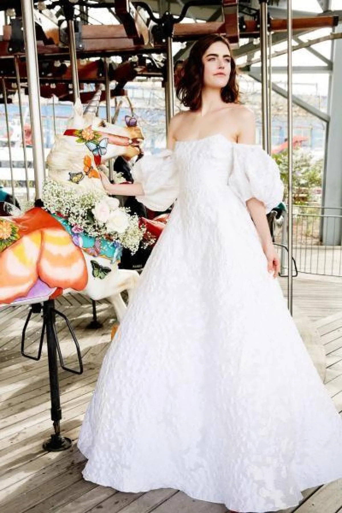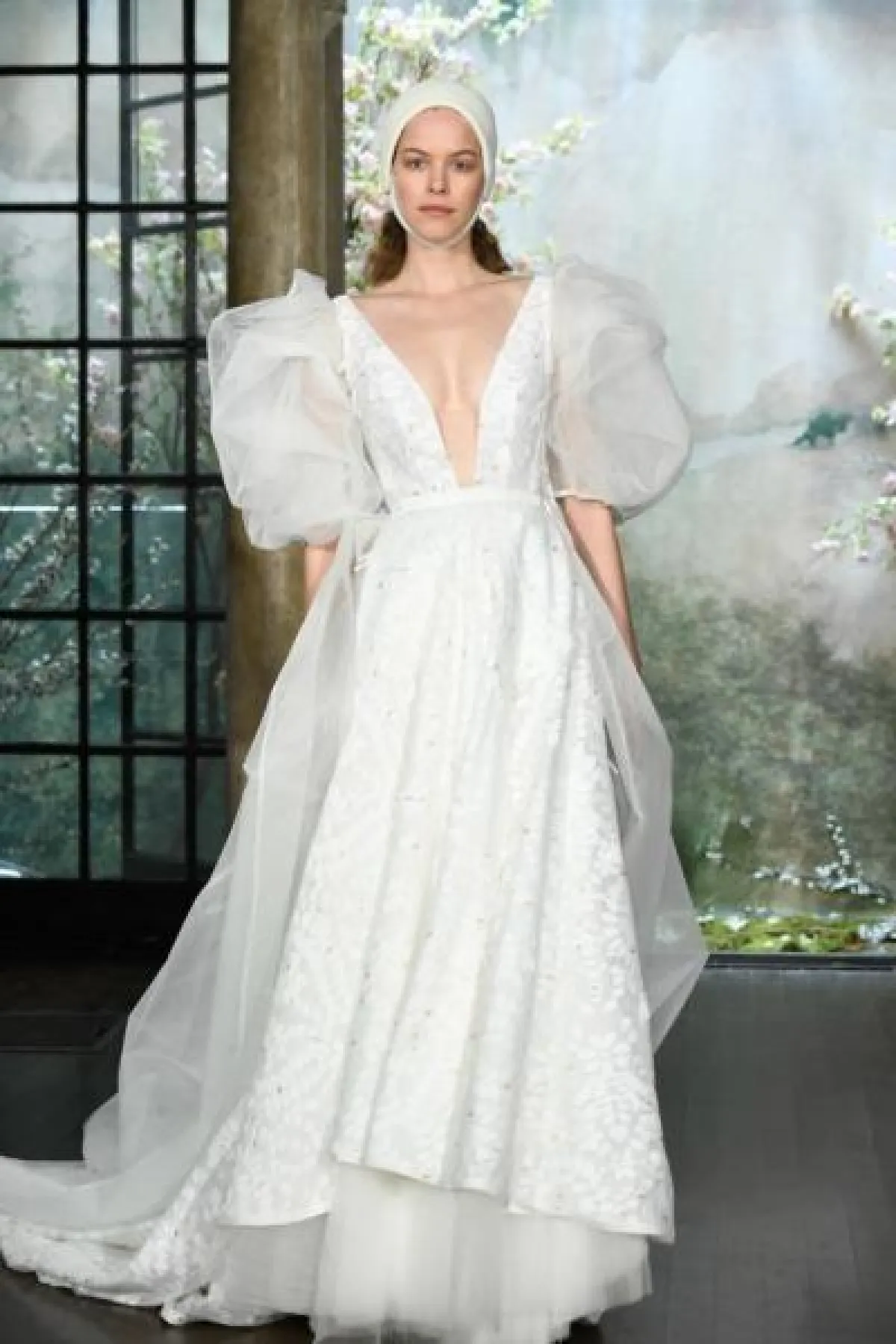 ويعد فستان آن بيرغ Anne Barge من أجمل فساتين زفاف بأكمام منفوخة لعام 2020، بالإضافة إلى فساتين Francesca Miranda، ليلا روز Lela Rose، وphuong-my.