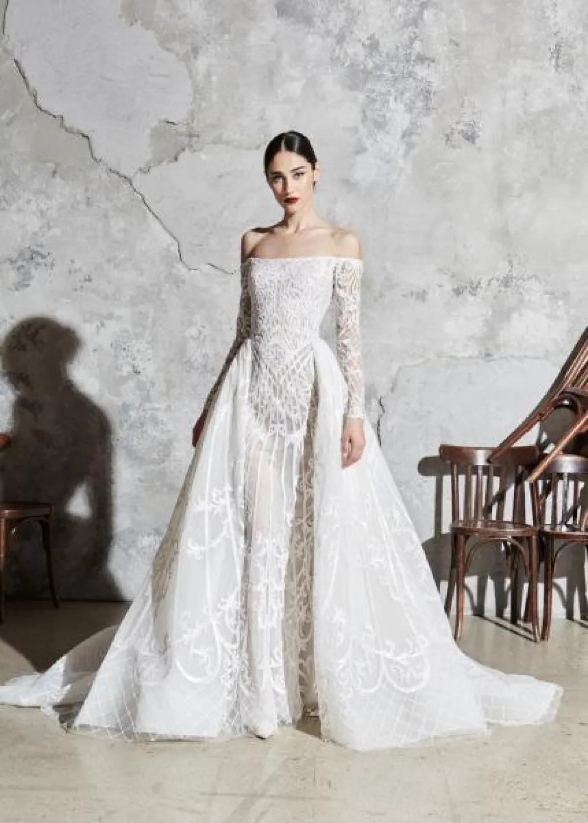 أيضاً برزت صيحة فساتين الزفاف بالأكمام المنفصلة عن الفستان، وهي صيحة جريئة وعصرية لإطلالة جذابة ولافتة في يوم العرس.