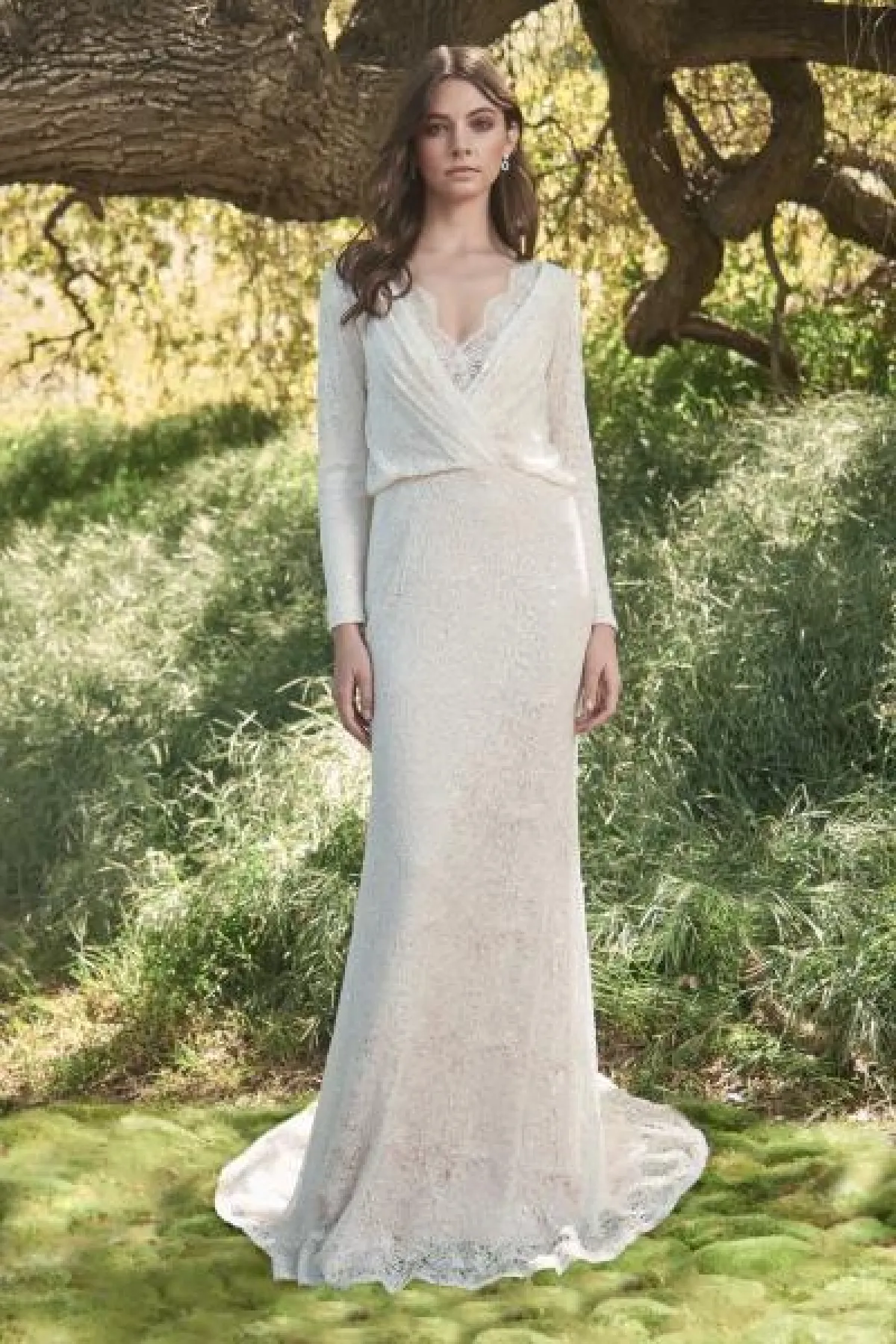 ومن أجمل فساتين الزفاف بالأكمام الطويلة، اخترنا لكِ فستان Amsale، وفساتين زفاف تاداشي شوجي Tadashi Shoji.