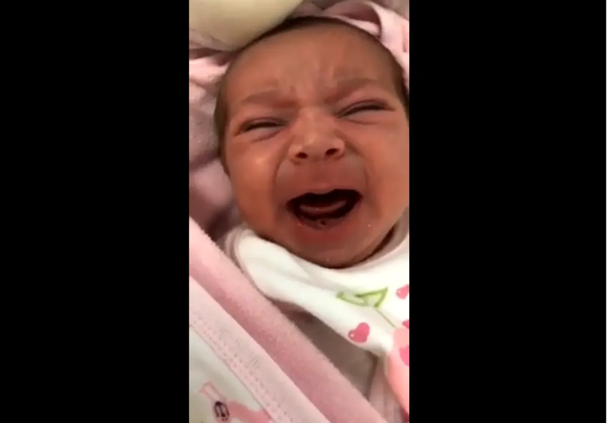وقد انتشر على مواقع التواصل الاجتماعي مقطع فيديو للطفلة التي لم يتجاوز عمرها 11 يومًا، يُظهر ولادتها بسن أمامية.