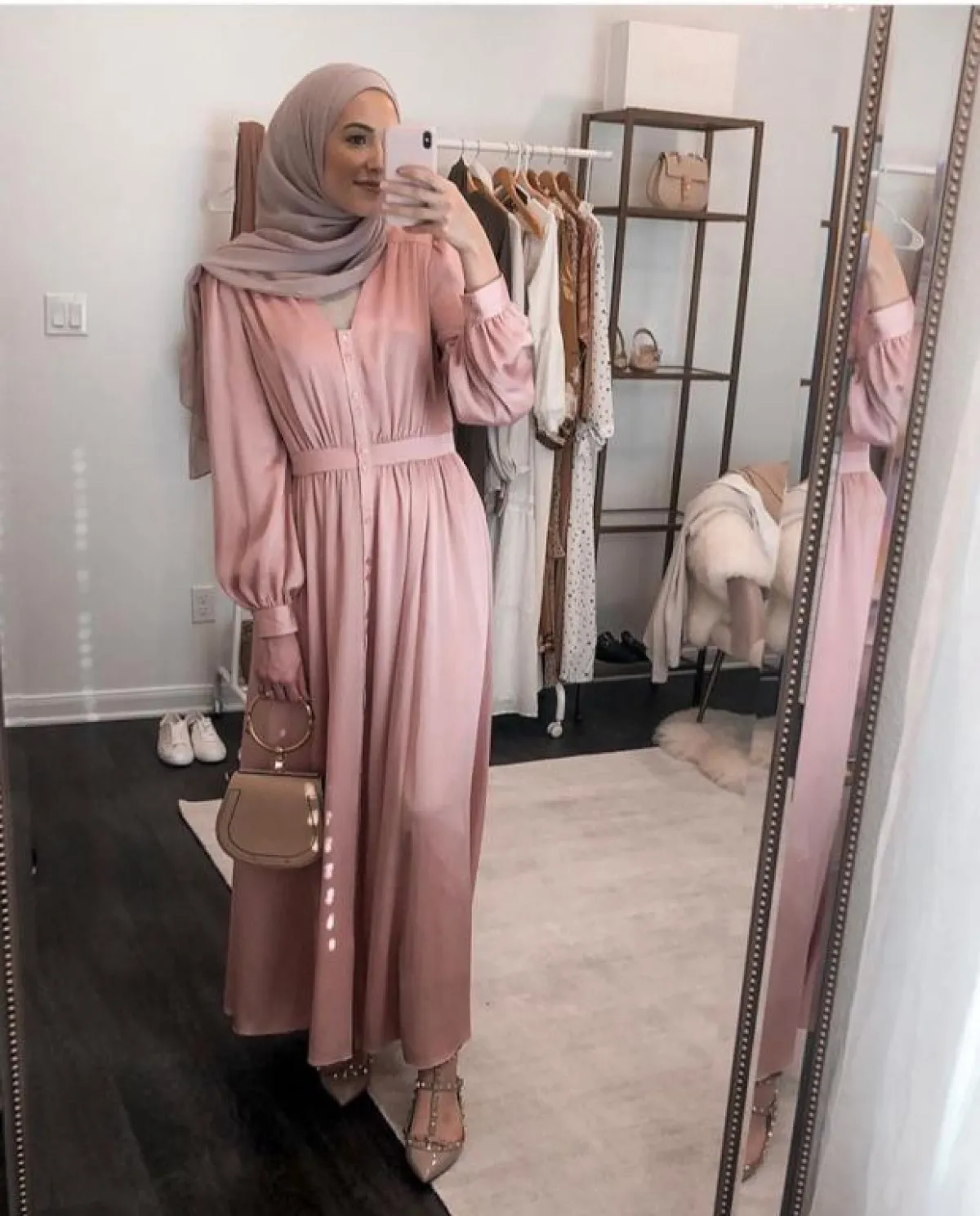 هذا الموديل للعباية مع الأكمام الواسعة، من التصميمات التي تفضلها الفتيات بشكل عام، كهذا الموديل من نهى حامد، مريح وعملي يمكنكِ تنسيقه مع الجينز، مع الحذاء المفتوح، والشنطة الكروس، مثالية لتجوالكِ أثناء الرحلات، مناسبة لكل المشاوير، وستحافظين بها على أناقتكِ، وستتحمل كثرة الحركة أيضًا.