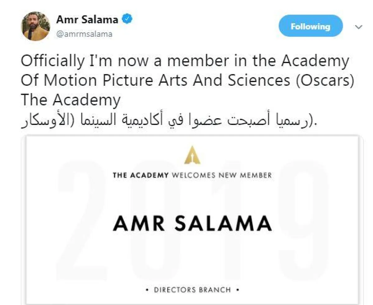 يسرا لم تعلق على خبر انضمامها رسميا للجان تحكيم جائزة الأوسكار، ولكن المخرج عمرو سلامة احتفل بانضمامه بشكل رسمي عضوًا في أكاديمية فنون وعلوم الصور المتحركة وغرد عبر حسابه على تويتر قائلا: رسميًا أصبحت عضوًا في أكاديمية السينما (الأوسكار).