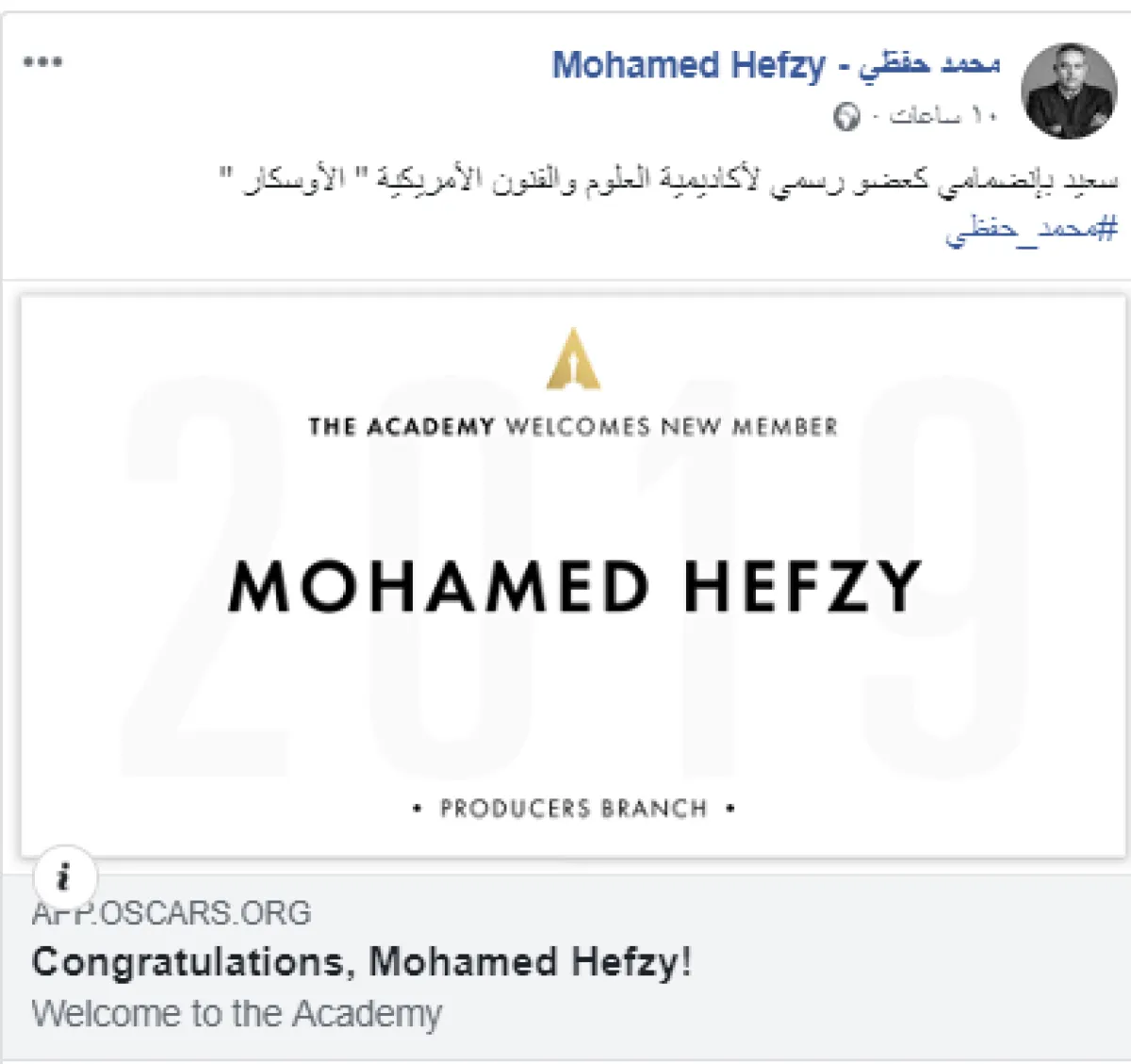 وعلق مدير مهرجان القاهرة السينمائي المنتج محمد حفظي على قرار اختياره لعضوية الأوسكار قائلا: سعيد بانضمامي كعضو رسمي لأكاديمية العلوم والفنون الأمريكية " الأوسكار "