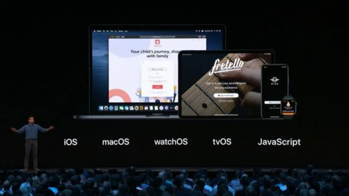 من المميِّزات الجديدة التي كشفت عنها آبل في مؤتمرها أخيرًا، تسجيل الدخول باستخدام حساب آبل الذي يمكن أن يدمجه المطورون في تطبيقاتهم. وفي هذا الإطار، تقول آبل إنَّ "الزرَّ الخاصَّ بها لا يجمع الكثير من البيانات عن المستخدمين، مُقارنة بزرِّ جوجل أو فيس بوك أو حتَّى تويتر وشركات أخرى، وهي تنصح باستخدامه عند إطلاقه".