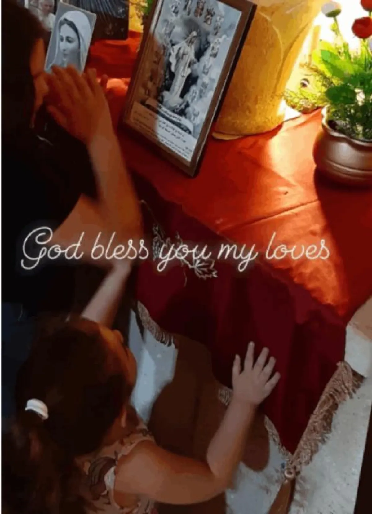 آخر ما نشرته أنجيلا بشارة صورة داخل الكنيسة تدعو فيها الله إلى حماية إبنتيها، ميشيل وميلانا، بعد أن كانت قد تحدثت في منشور سابق عن ظلم القوانين في لبنان في موضوع الحضانة.