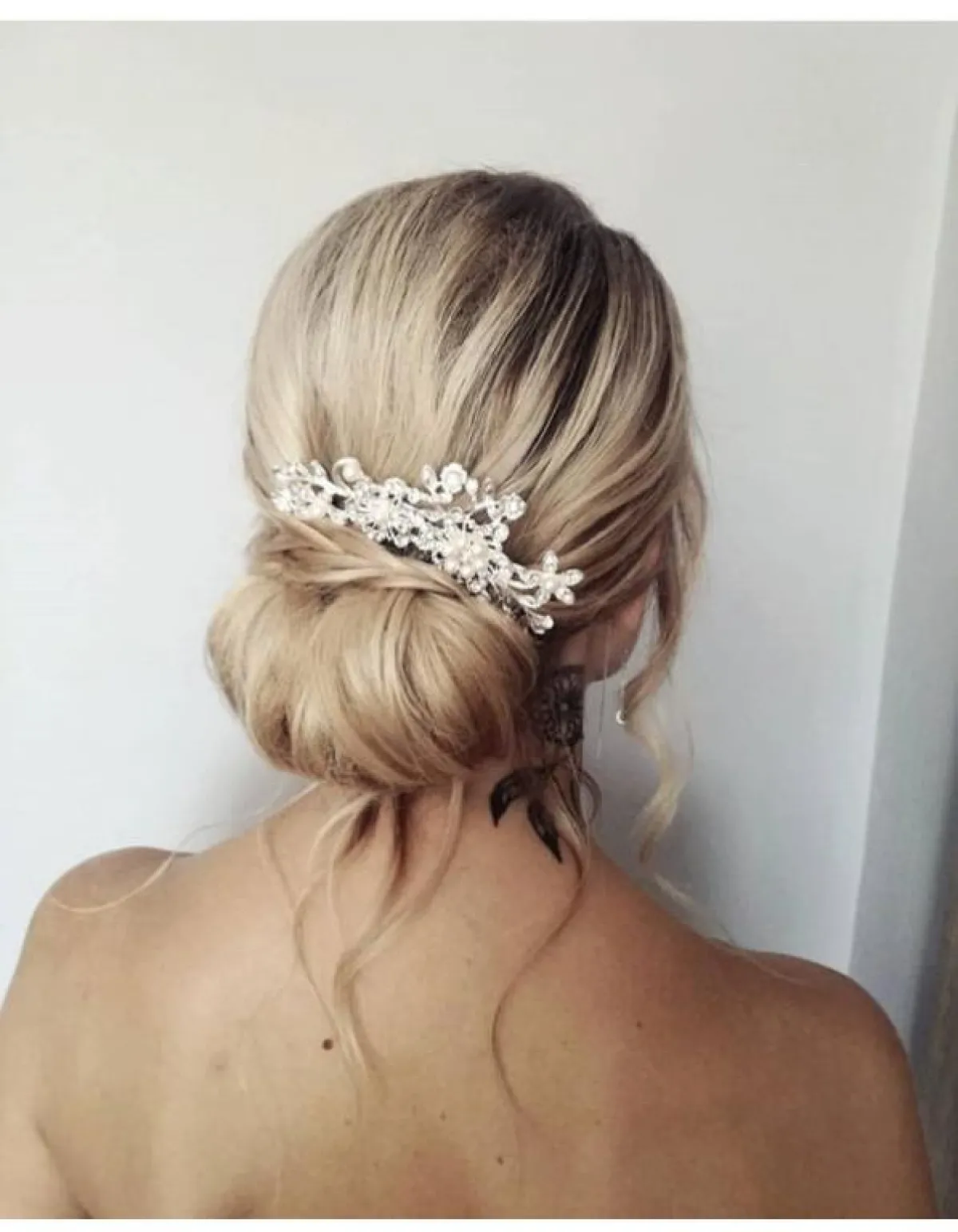 من الممكن أن تعتمدي تسريحة الكعكة المنخفضة لاطلالة بسيطة، وبالوقت نفسه مناسبة لطول شعرِك، بخاصة وإن كنتِ سوف تعتمدين طرحة مميزة تريدين إبراز جمالها، فأكثر ما سيناسبها هو تسريحة الكعكة المنخفضة.