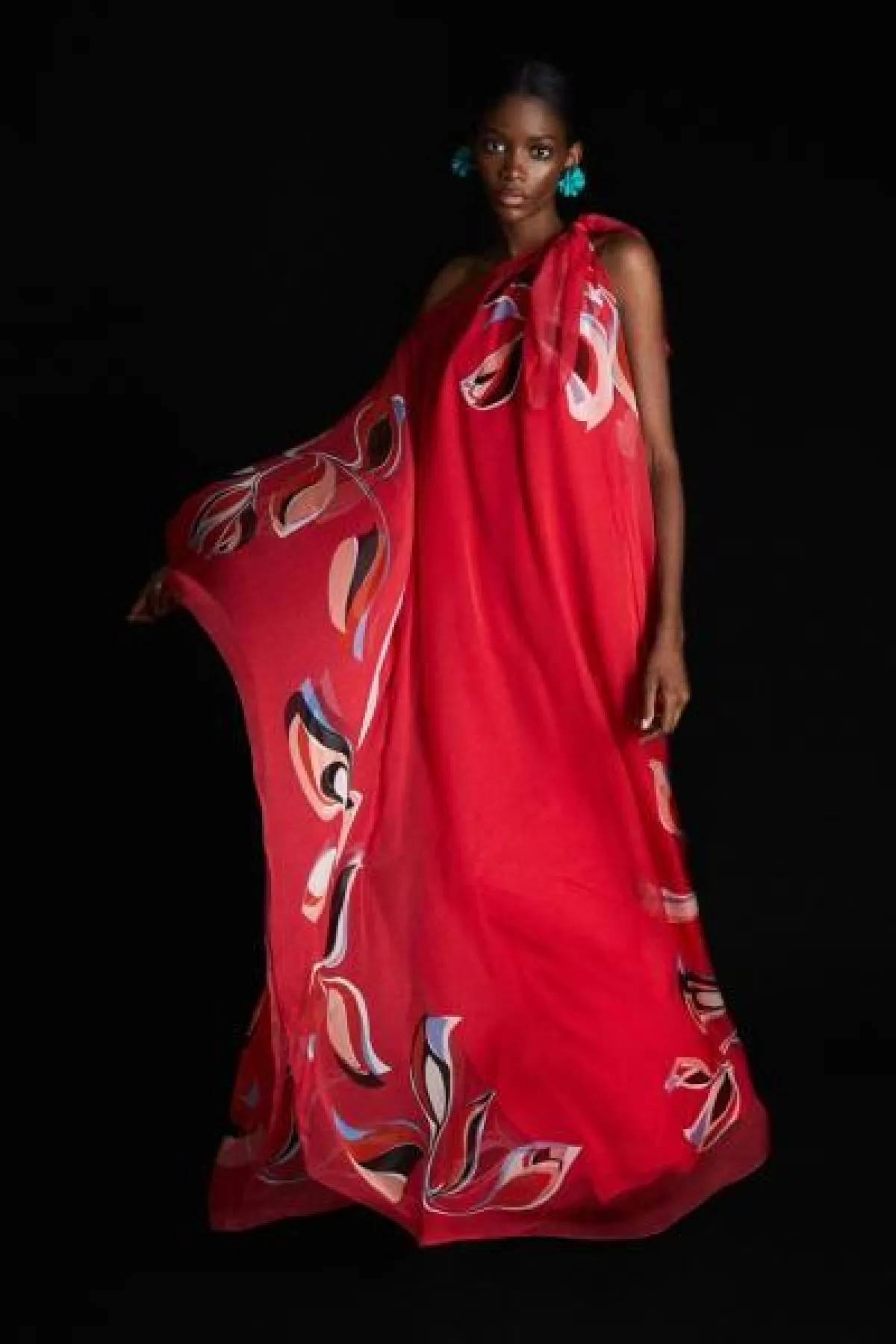 سطع نجم فساتين السهرة ذات التنانير المنفوشة مثل موديل No. 21 كما أحببنا الفستان المستوحى من قصة القفطان العربي من مجموعة إميليو بوتشي Emilio Pucci وكلها تصاميم تساهم في إخفاء عيوب القوام الكمثري والتي تتركز في الجزء السفلي.