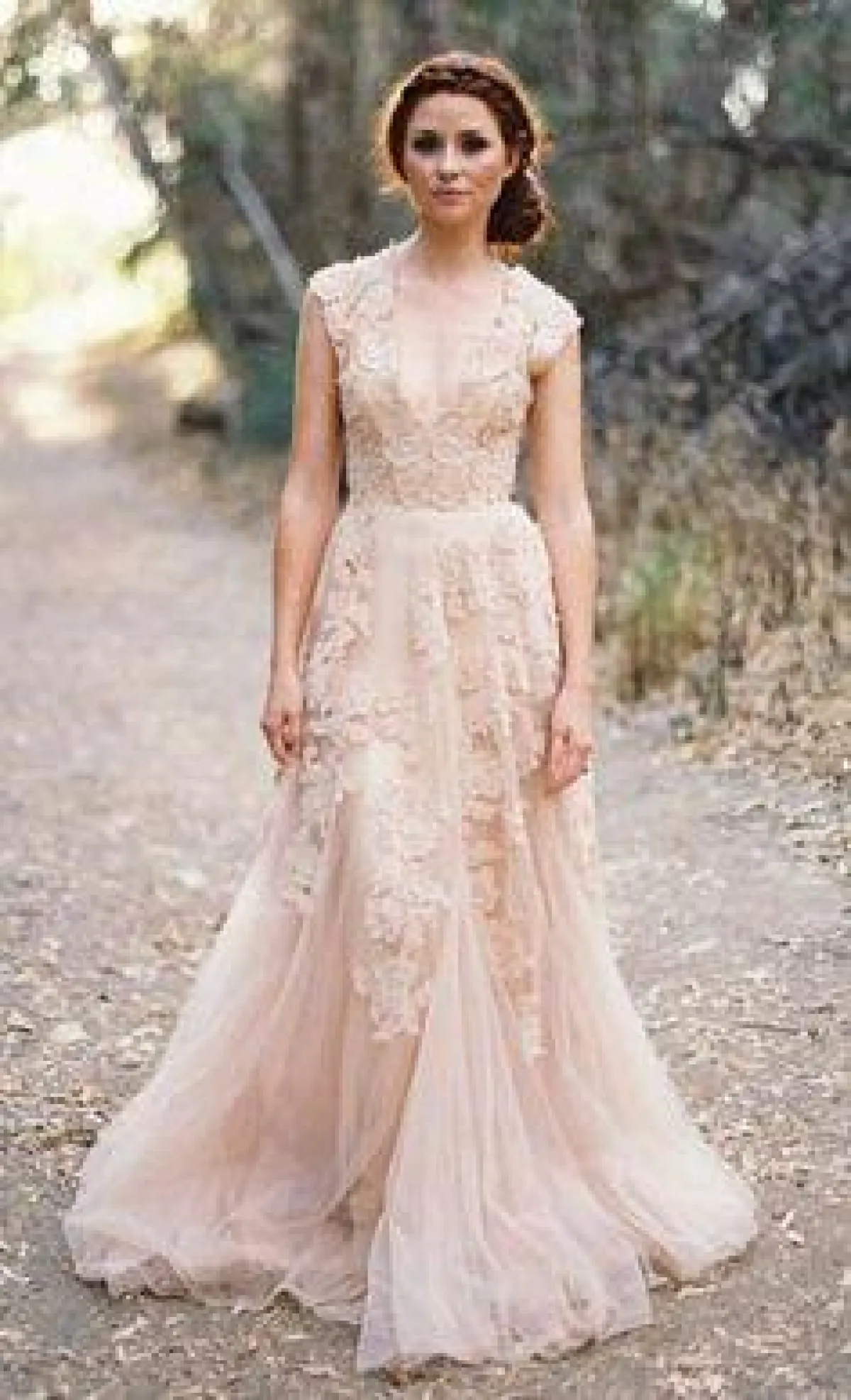 كما أنّ هذا اللون مناسب لبشرة الكثير من الصبايا، بخاصة صاحبات البشرة الحنطية، التي تتميز بها أغلب الصبايا بعالمنا العربي، لهذا جمعنا لكِ اليوم فساتين زفاف باللون السكري لاطلالة آخر موضة.