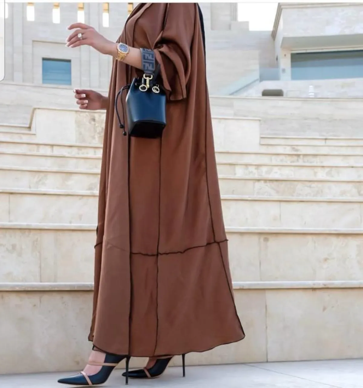 عباية باللون البني مع درجة الأسود