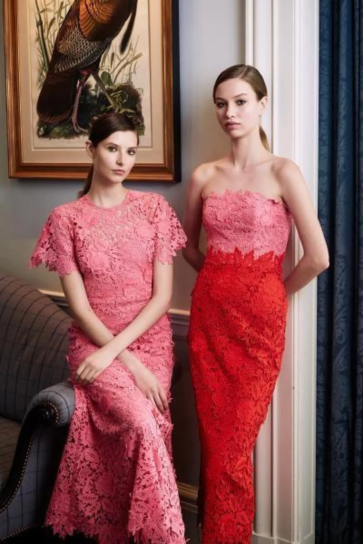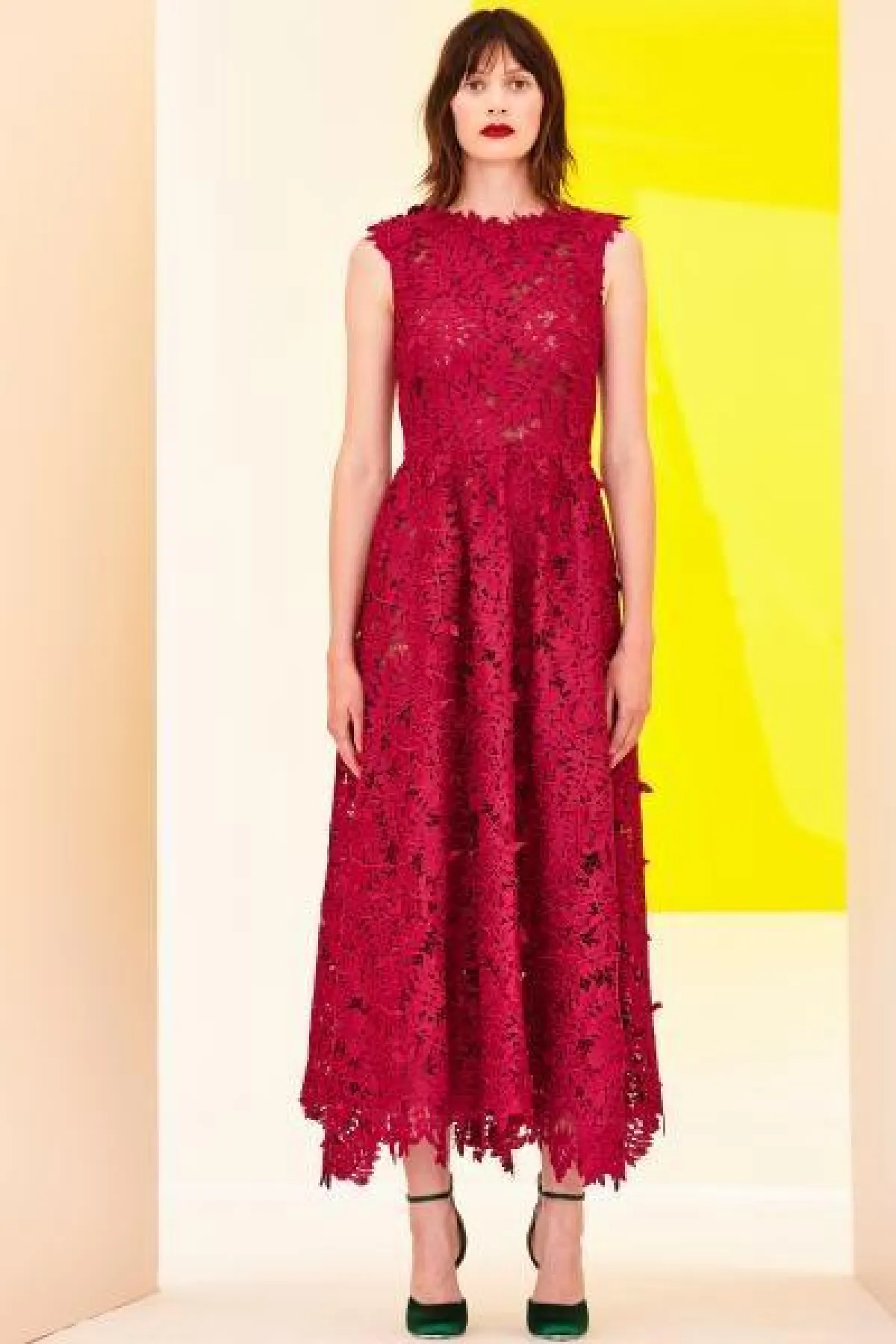أدرجت ماركة ليلا روز Lela Rose تشكيلة خلابة من الفساتين الدانتيل التي أعتمدت على الألوان الأنثوية المتمثلة في مزيج الأحمر والوردي، وقد لفتنا الفستان بالأكمام النافرة، أعتمدي هذا الستايل لتمنحي أكتافك مزيد من العرض في حال كنتِ نحيلة القامة.