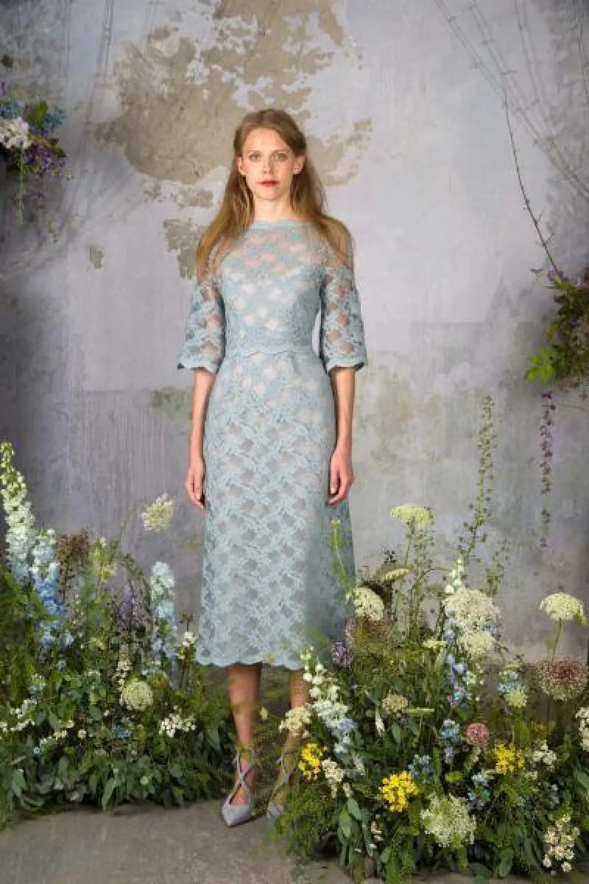 في مجموعة تاداشي شوجي Tadashi Shoji جاءت الفساتين الدانتيل بأطوال تتلاقى مع الركبة ما يجعلها من القطع المناسبة للفتيات والسيدات قصيرات القامة حيث ستساعدهن على إبراز طول الساقين.