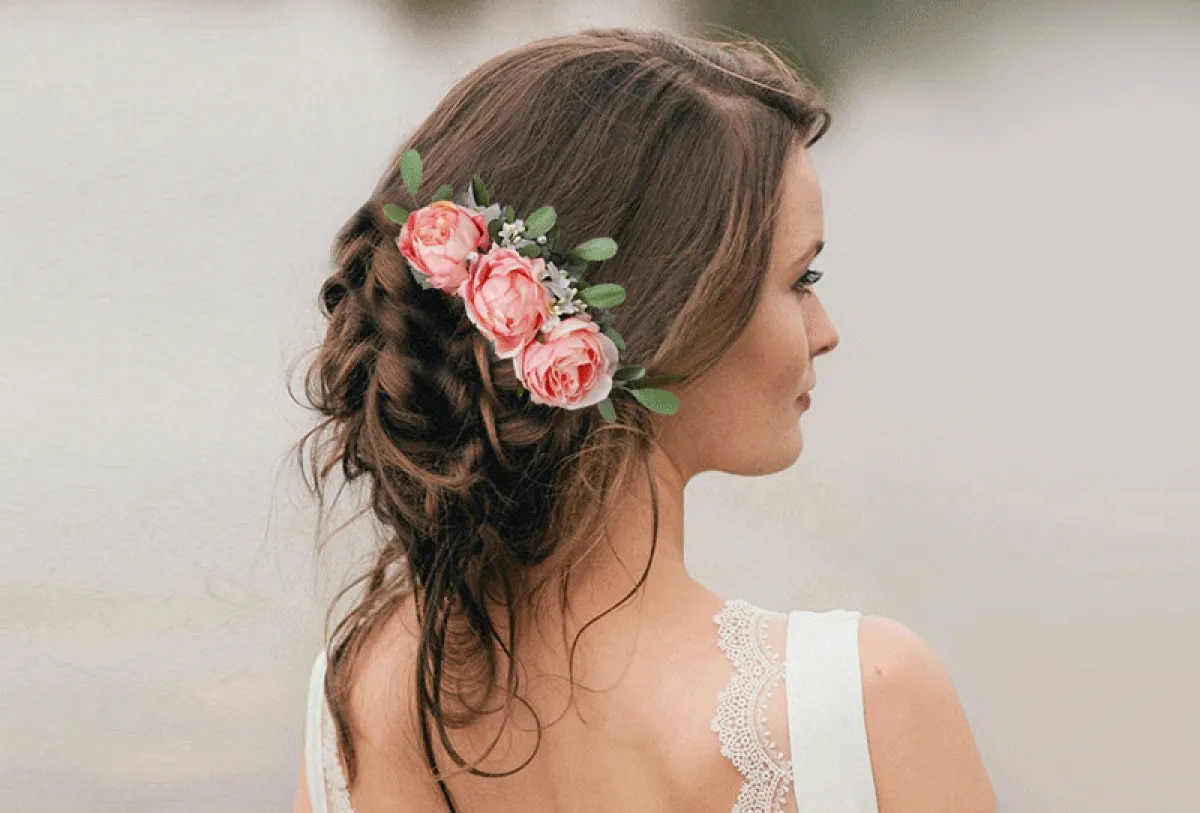 الصبايا تبحث عن اللمسات المبهجة في اطلالتهنّ يوم الزفاف، فلِمَ لا تعتمدين الورود الملونة باكسسوار الشعر، من الممكن أن تطبقيها مع الشعر المرفوع، أو الفوضوي.