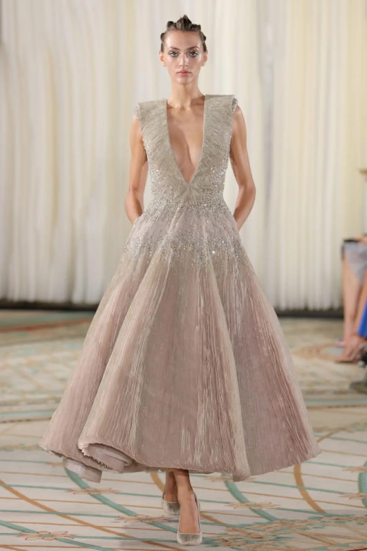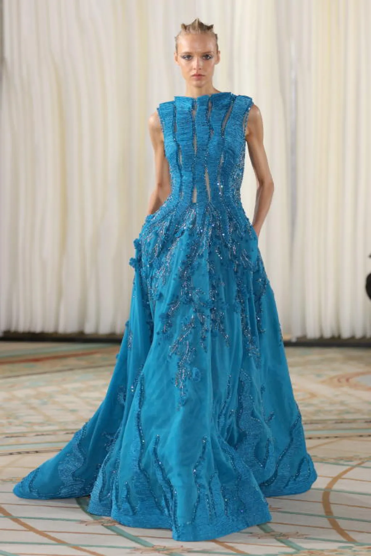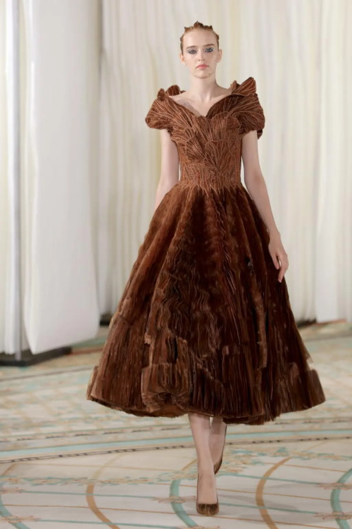استكشافًا للعالم الغامض للفطر، يتم طي الأورجانزا الواحدة فوق الأخرى آلاف المرات، تمامًا مثل خياشيم الفطر في سطحه السفلي. كما تُترجم القبعات الإسفنجية إلى أشكال ضخمة جميلة، أمّا التطريزات بالخيطان السلكية والحريرية فتشبه الميسيليوم، ذاك النباتي الأخضر الّذي يتكون من جزء كبير من خيط فطري متفرع.