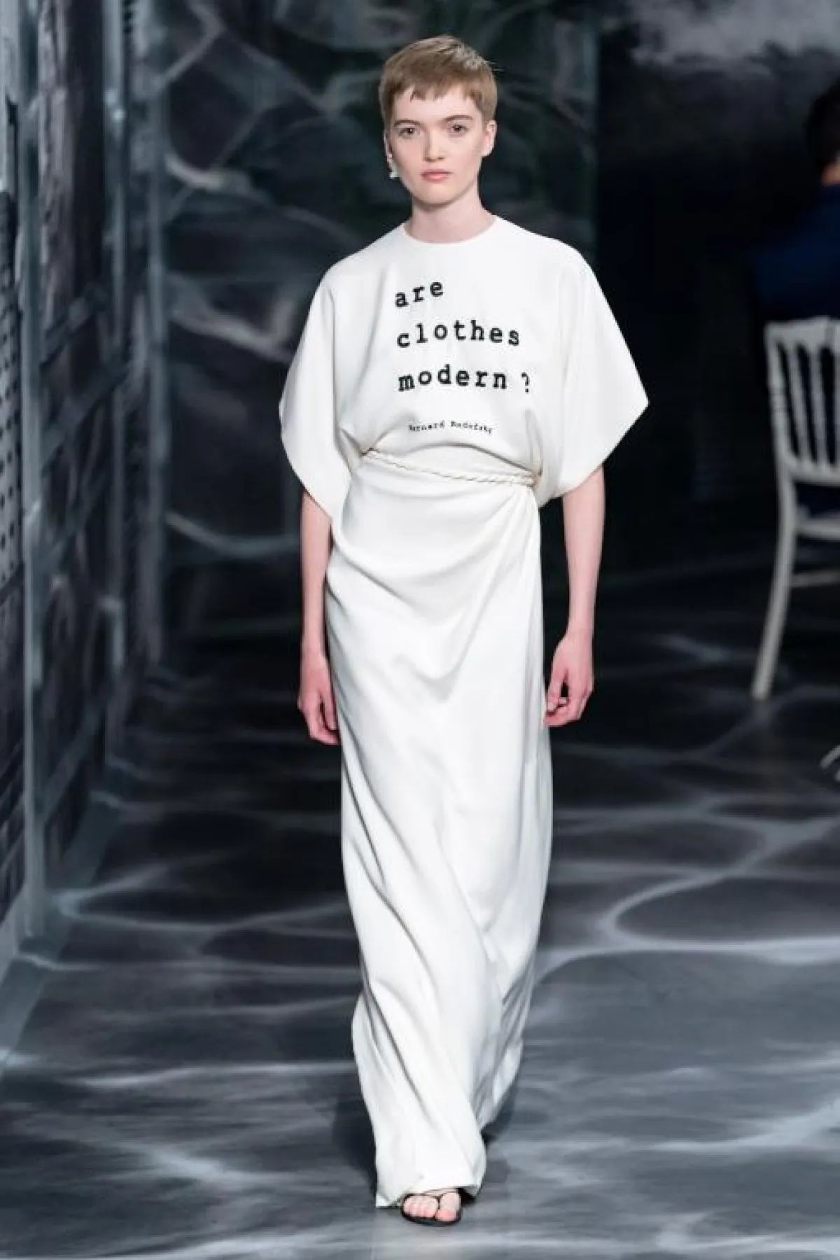 اختارت في هذه المجموعة ماريا غرازيا كيوري الغوص في أرشيف ديور وتحديداً أقوال وأعمال الكاتب Bernard Rudofsky الذي اشتهر بأعماله التي تعكس الفنّ المعاصر. وإلى العام 1947 عادت لتستوحي التصاميم فكانت النتيجة: تقديم موضة الفستان الـ T Shirt، هذه الموضة التي افتتحت العرض والتي أتت مطبّعة بشعار Are Clothes Modern الذي كان هو أيضاً موضوع مقال الكاتب Rudofsky آنذاك.
